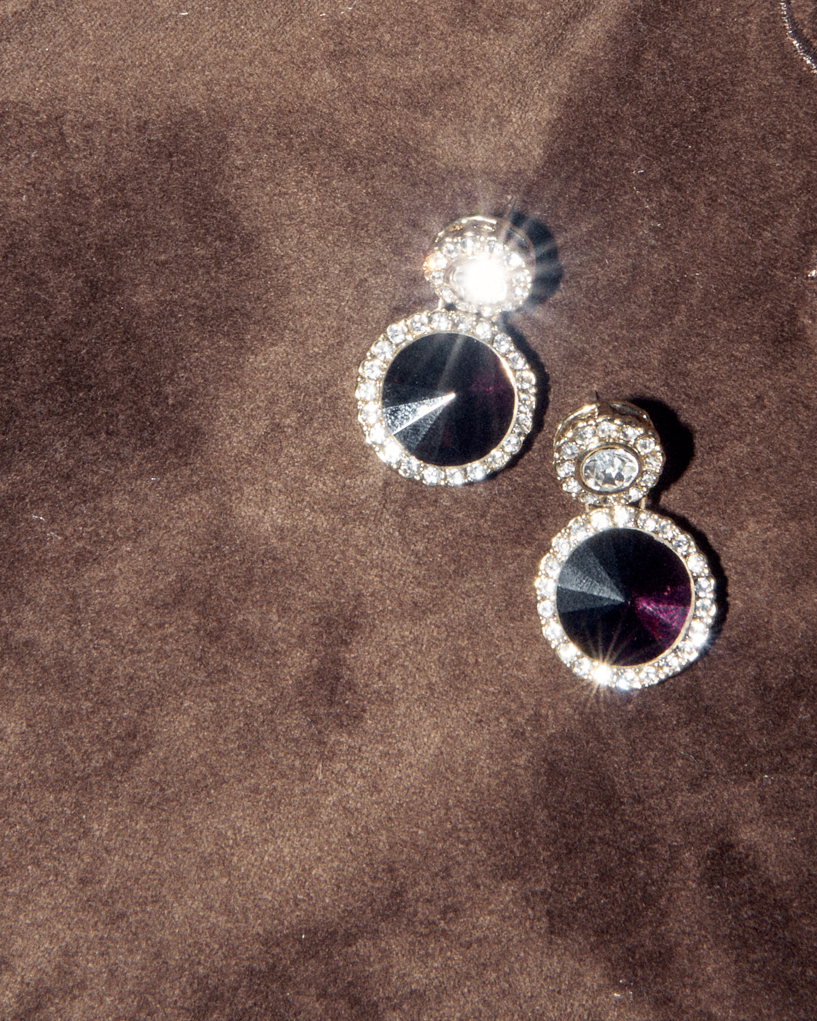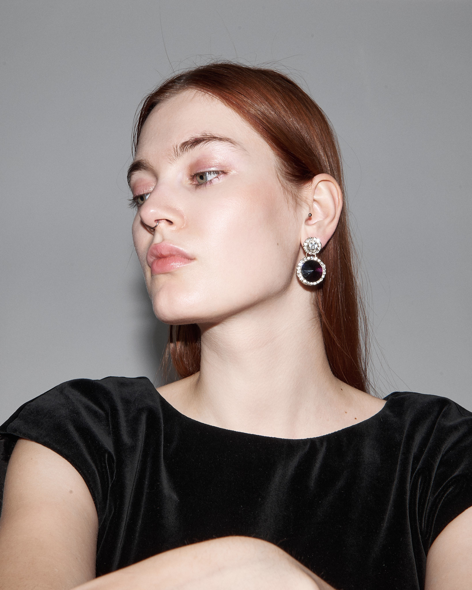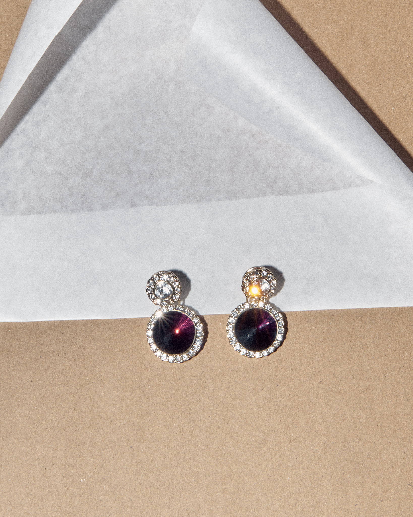 Акцентные винтажные серьги. Вставка из фиолетового кристалла, надежный замок.