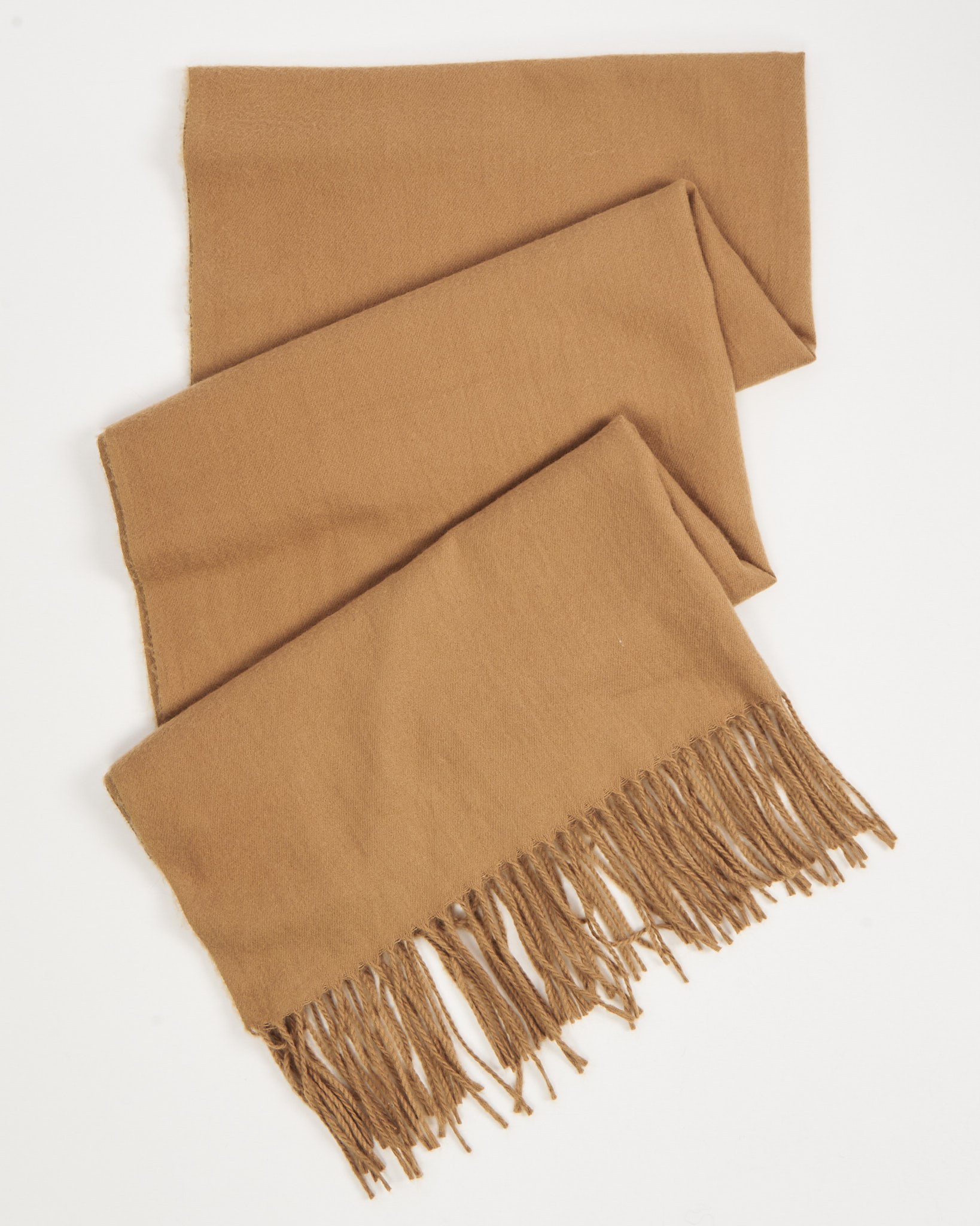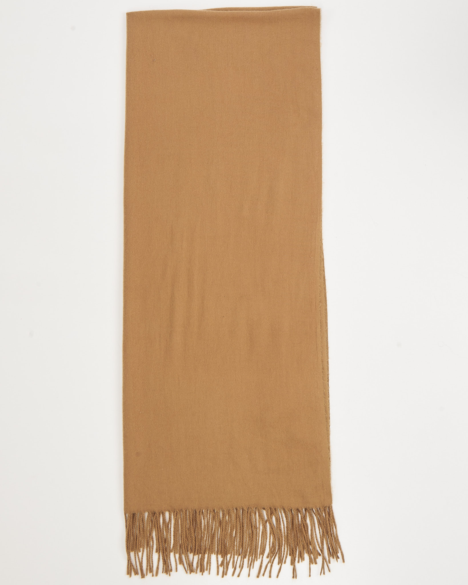 Шарф из 100% кашемира в карамельном оттенке. Ровная бахрома по краям.