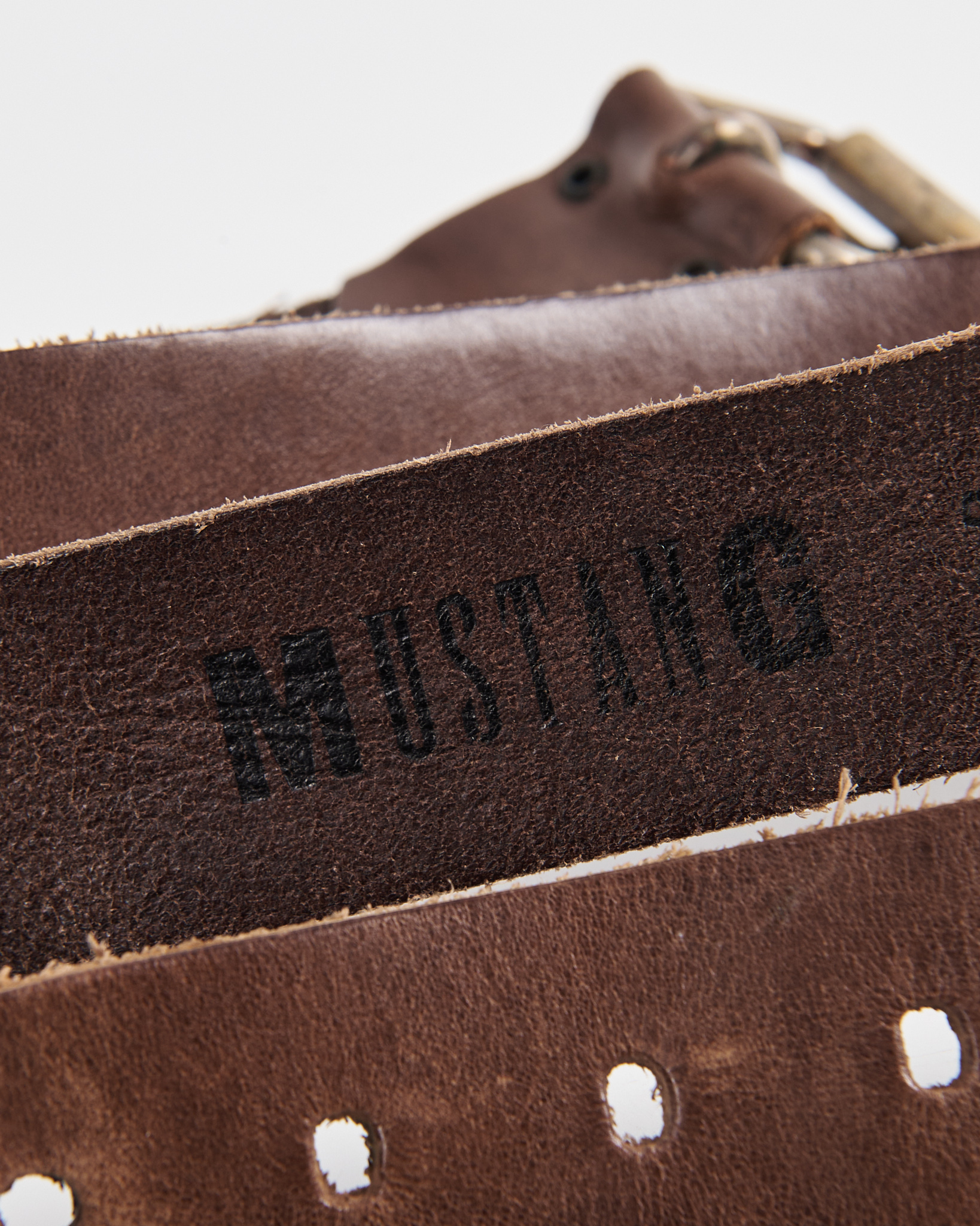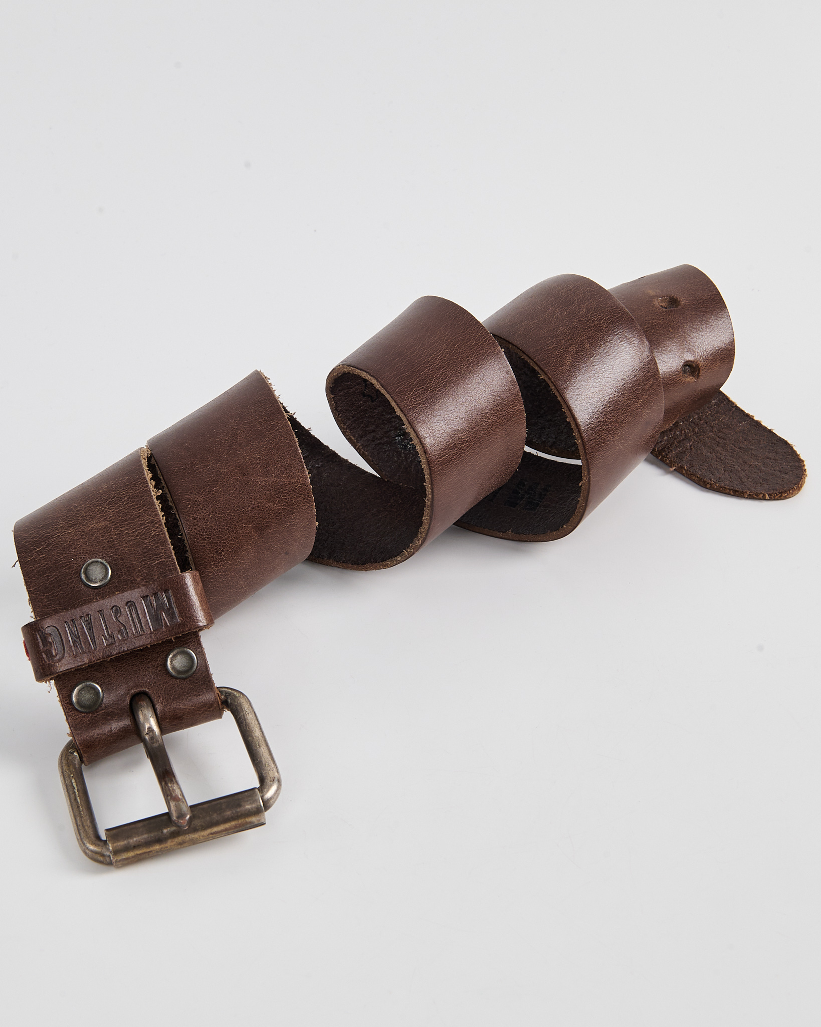 Кожаный ремень Mustang с массивной пряжкой. Акцентная металлическая пряжка с патиной. Тиснение Mustang.