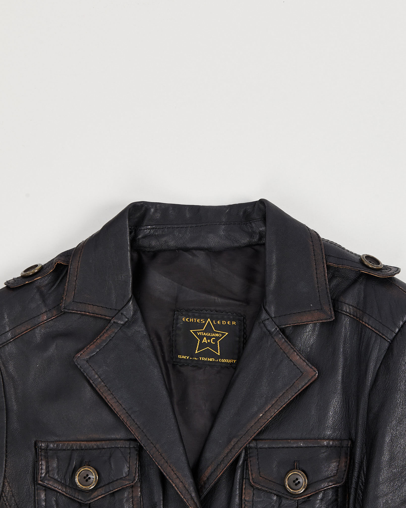 Уровень 10 соответствует новому винтажному состоянию/deadstock. Любые дефекты указаны в описании. Мы тщательно оцениваем каждую вещь и выставляем на продажу только те, у которых есть незначительные признаки износа или где несовершенства придают им особый шарм.