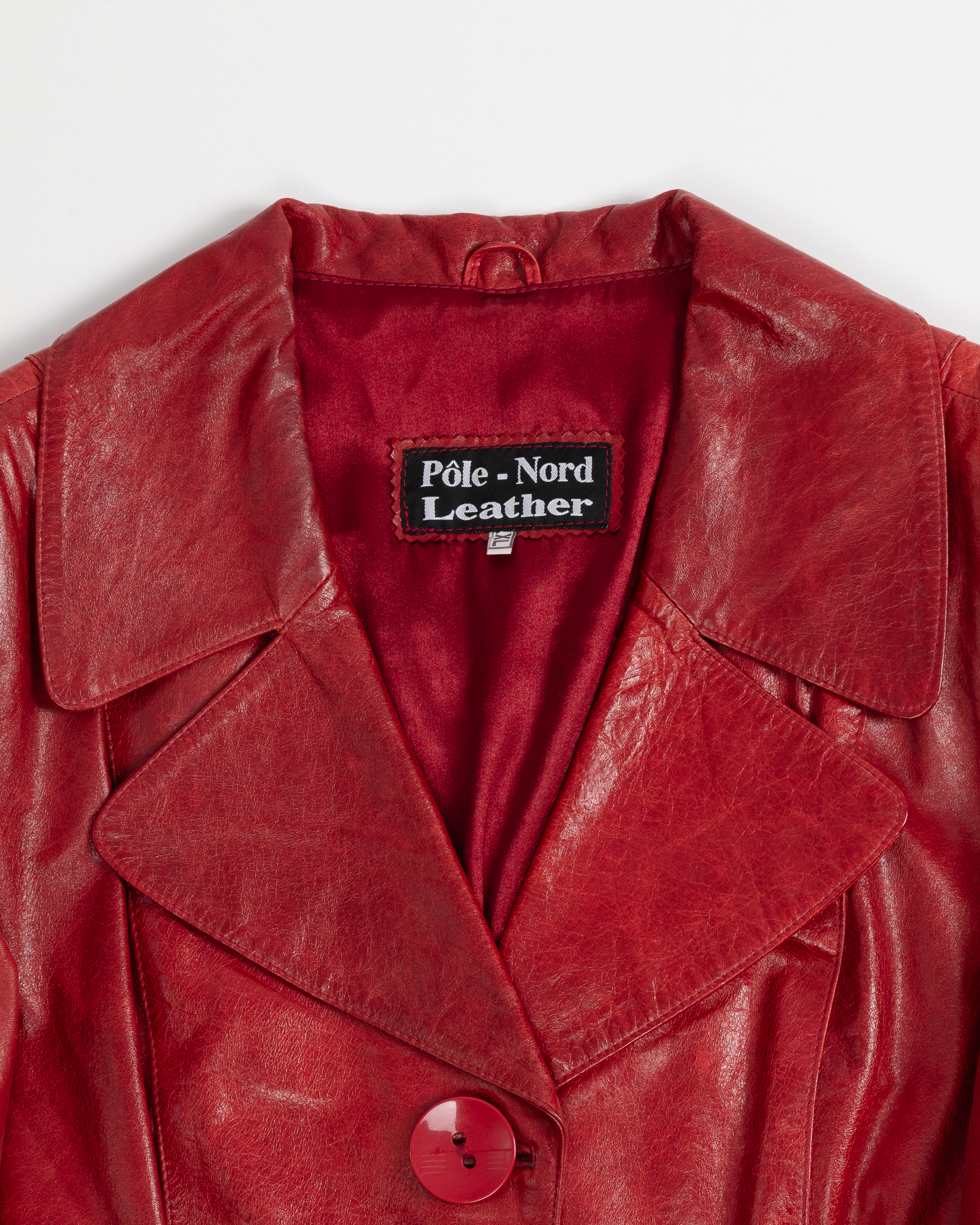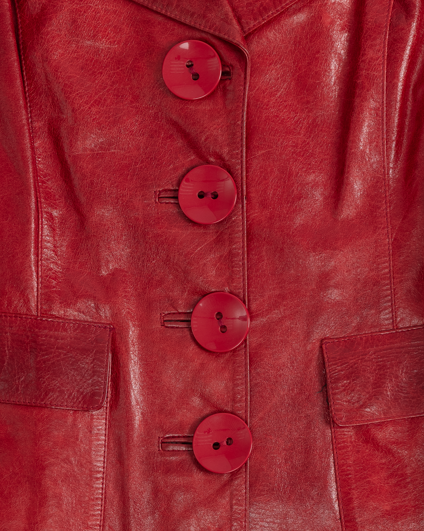 Выполнен из мягкой натуральной кожи насыщенного алого оттенка с атласной подкладкой.Характерные крупные пуговицы и широкий отложной воротник передают.Идеален в сочетании с джинсами, чёрными брюками или юбкой — как акцент в винтажных и современных образах.
