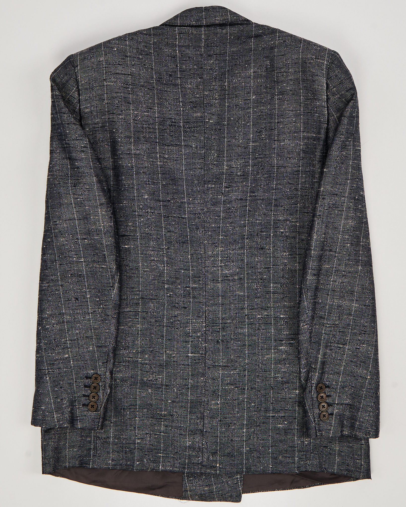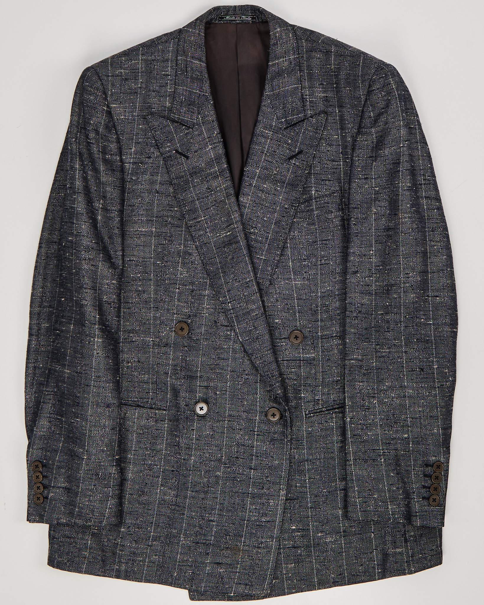 Пиджак Ermenegildo Zegna из натурального шелка. Прямая посадка,двубортная воротник и аккуратные лацканы, фактурный рисунок. Пиджак отлчино подойдёт для повседневных образов. Итальянское производство.