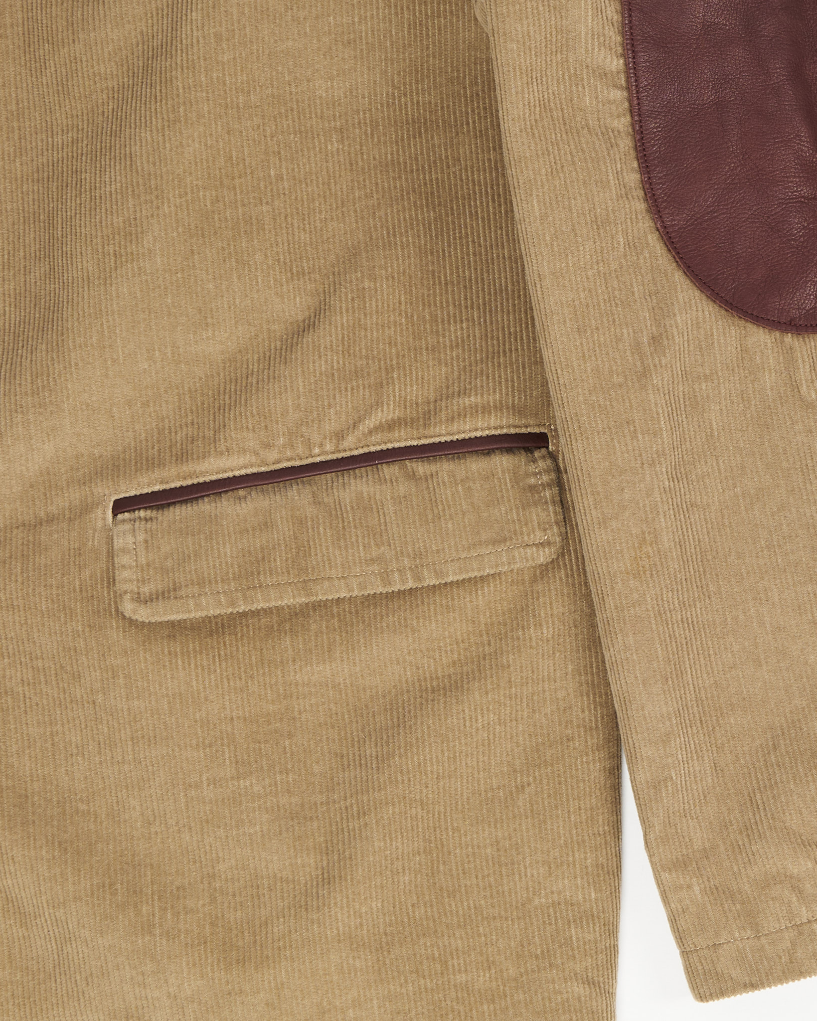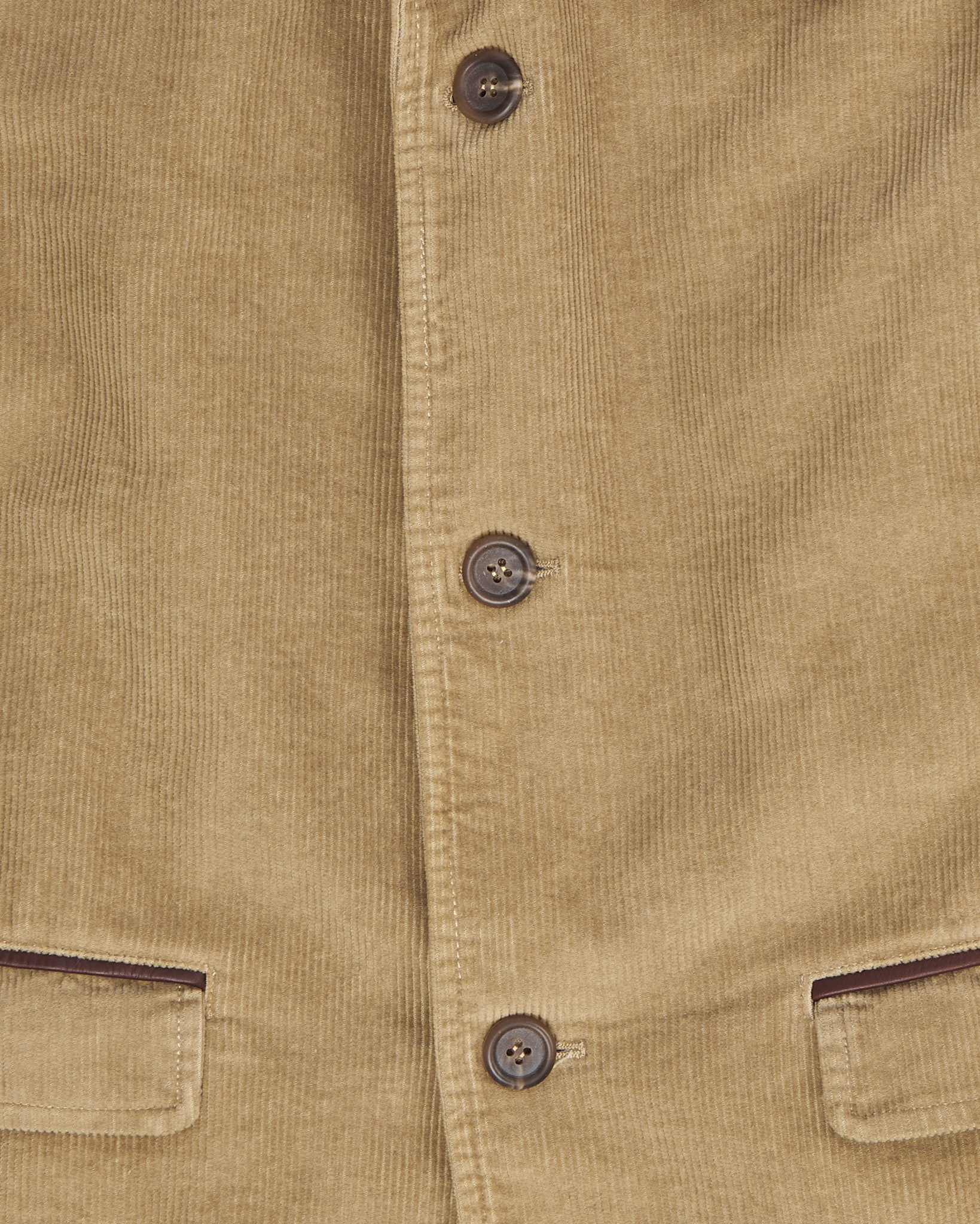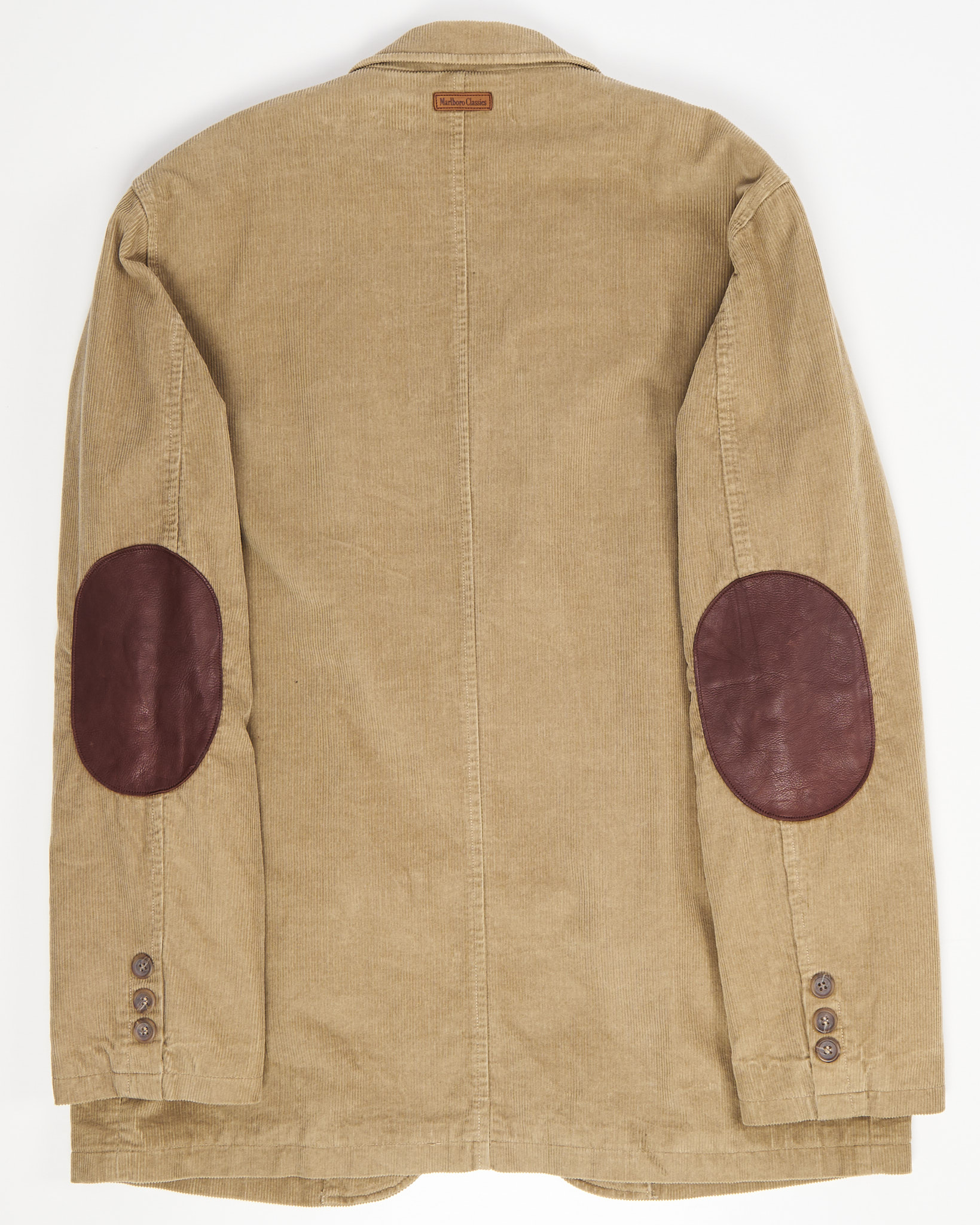 Пиджак из 100% хлопка. Посадка прямая с расслабленным силуэтом. Функциональные карманы, кожаные накладки на локтях и логотип бренда сзади.
