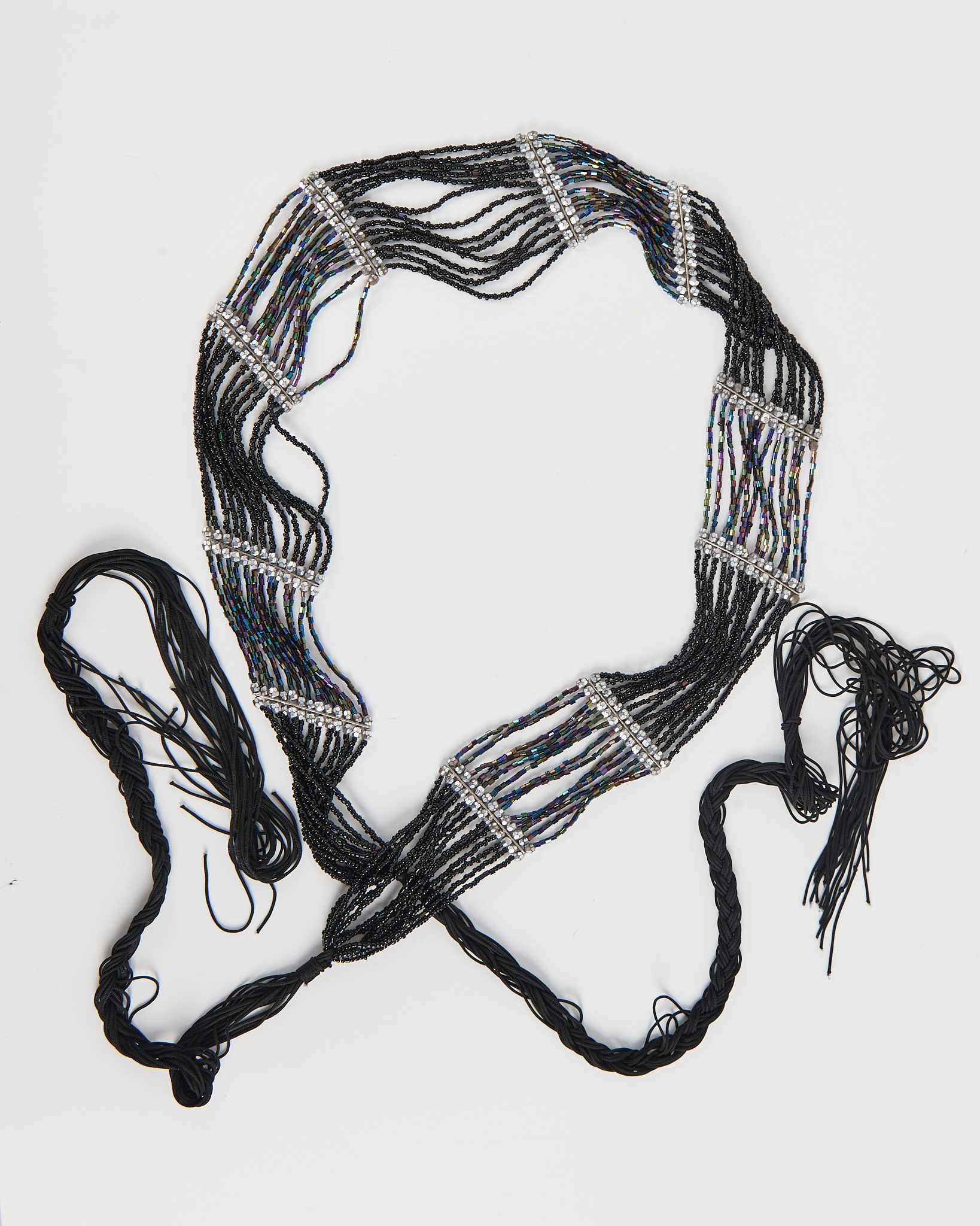 Винтажный пояс из нитей бисера с переливающимися стеклянными элементами. Многослойная структура пояса придает акцент, пояс удобно сидит по талии Модель подойдёт для образов в стиле бохо.