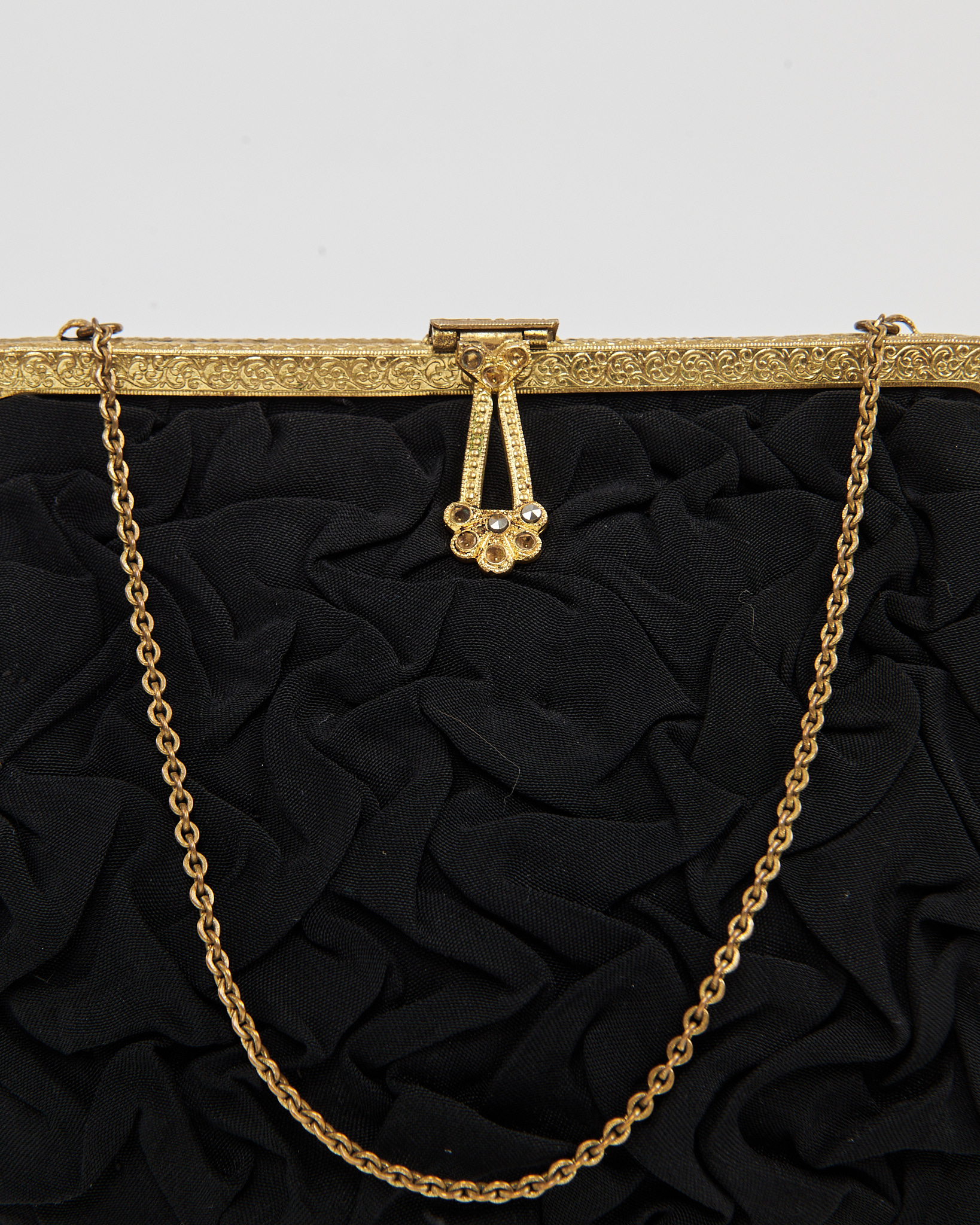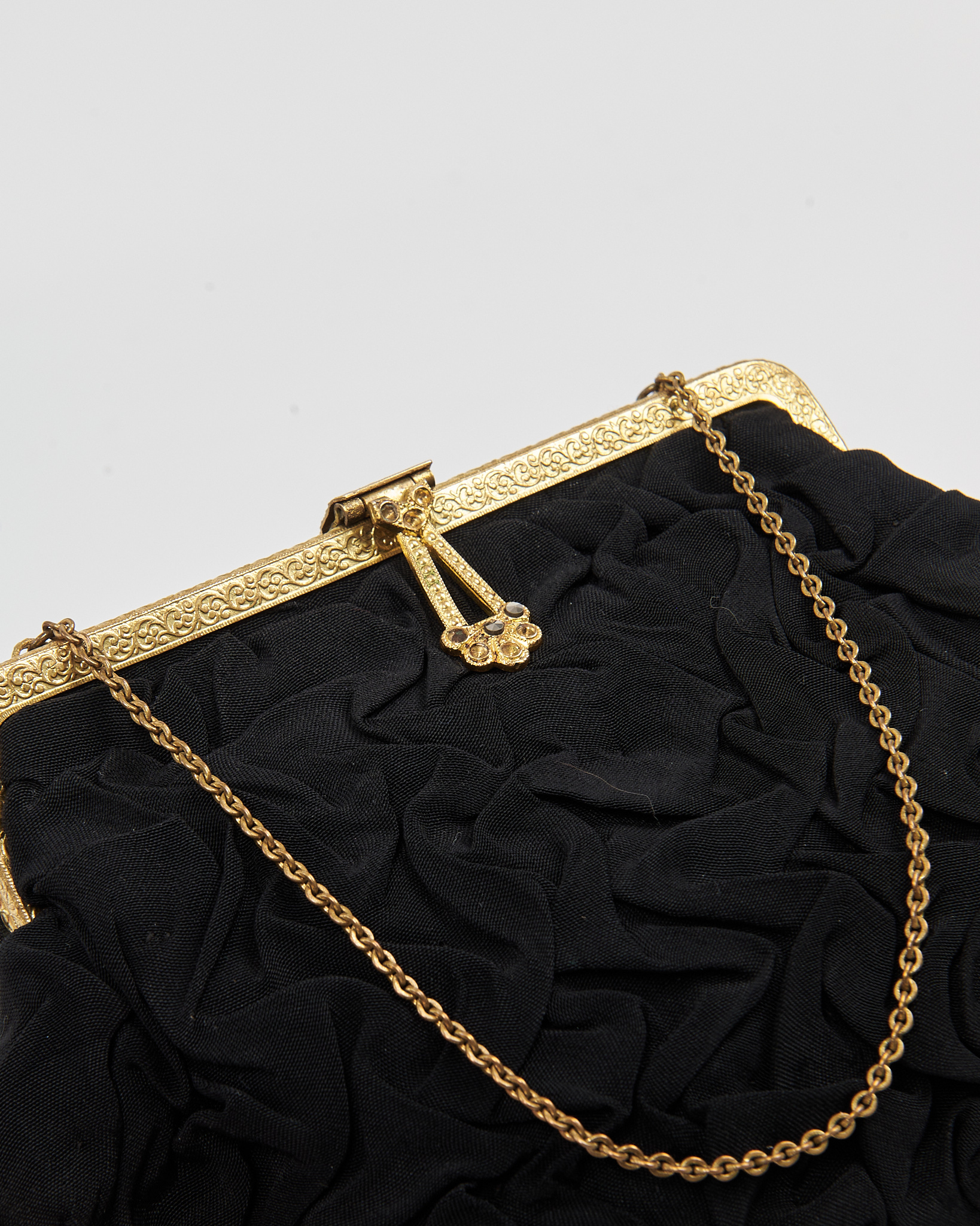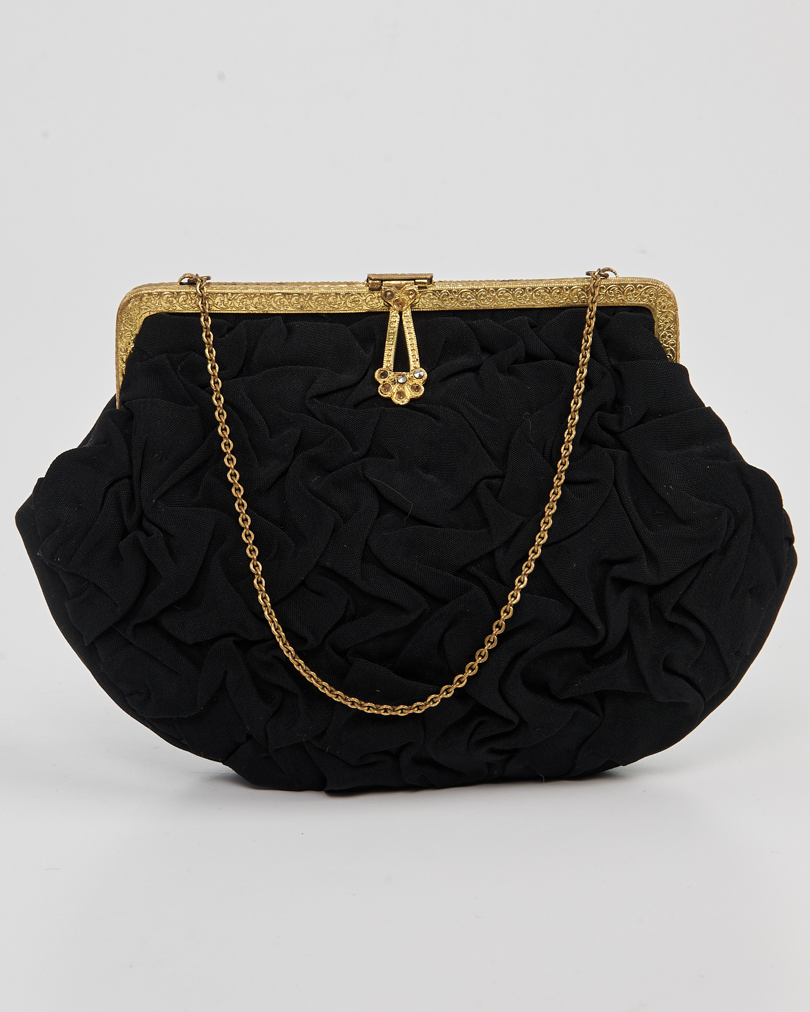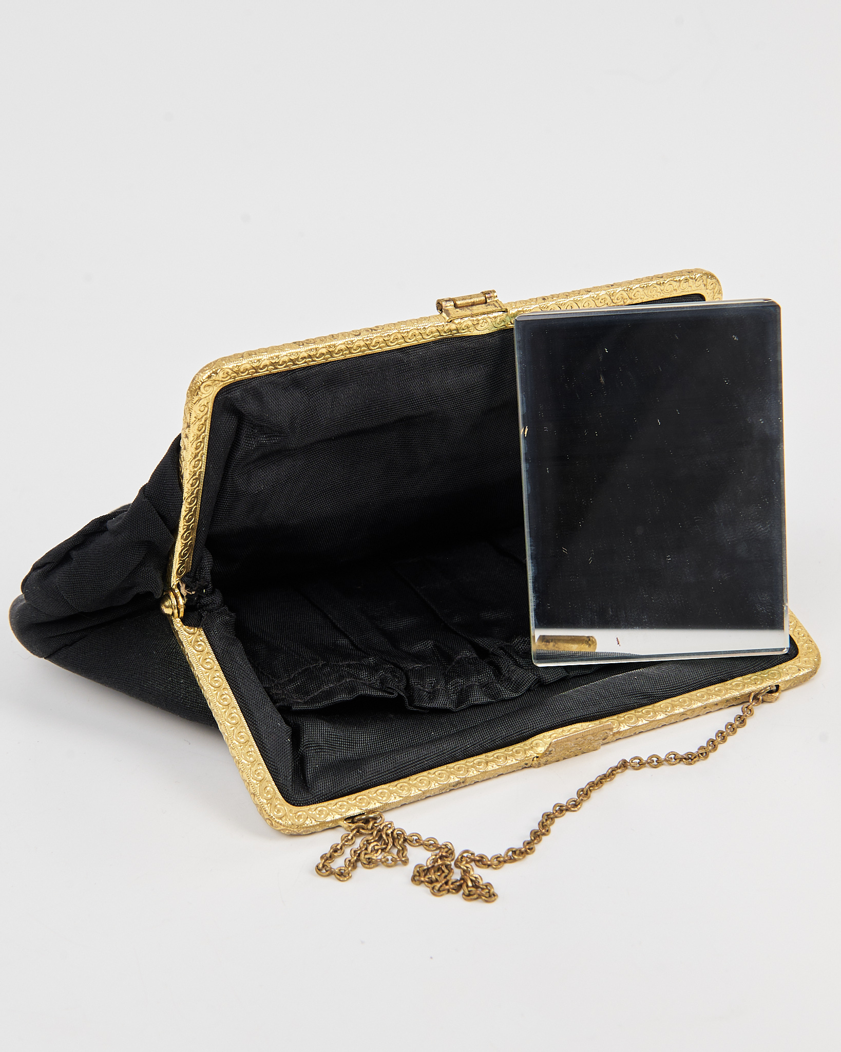 Эффектная сумка с выразительной драпировкой и изящной металлической рамкой золотистого оттенка. Компактная форма, цепочка позволяет носить сумку на плече или в руке, декоративная застёжка. в комплекте идёт маленькое зеркало.
