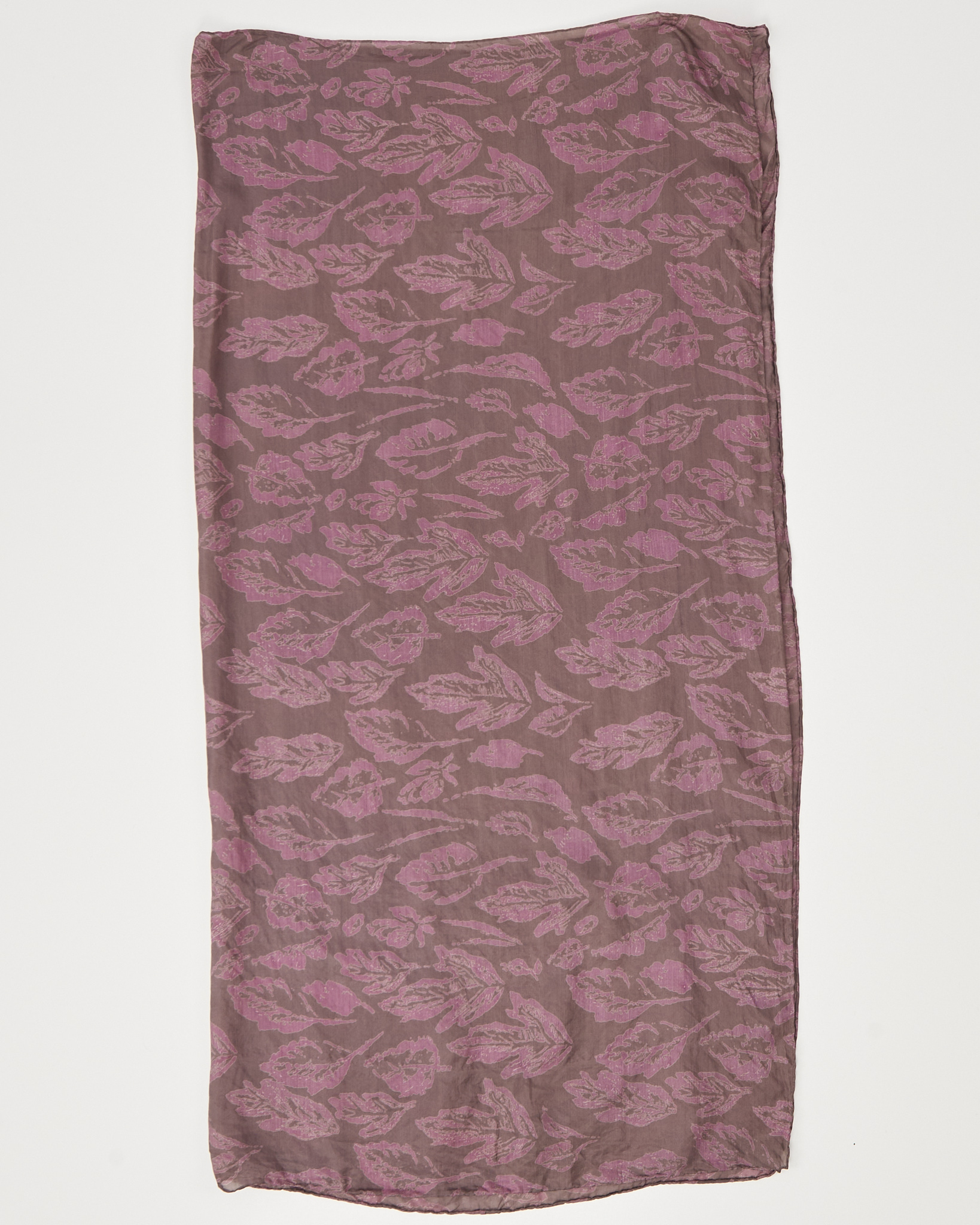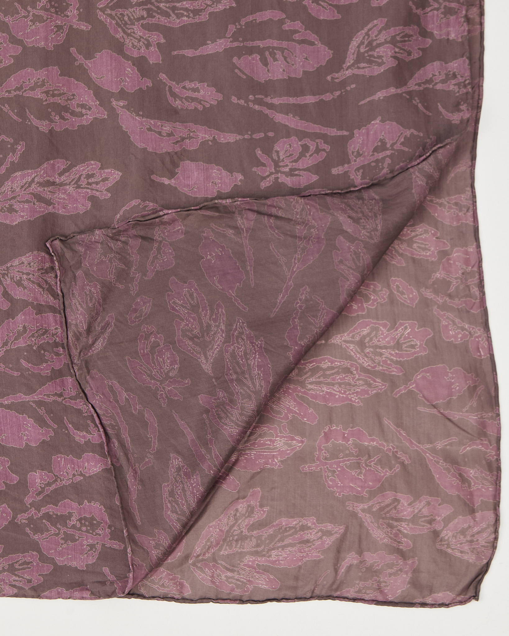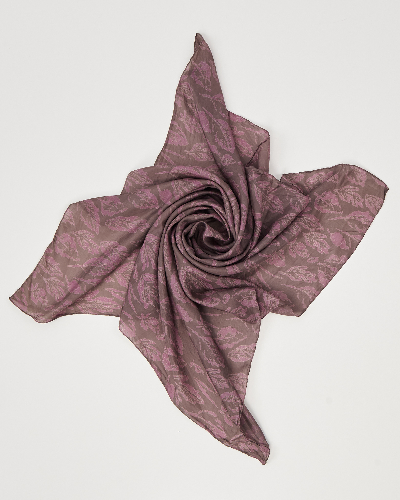 Платок из тонкого, натурального шёлка. Пыльно-розовый орнамент на коричневом фоне, аккуратная обработка краев.
