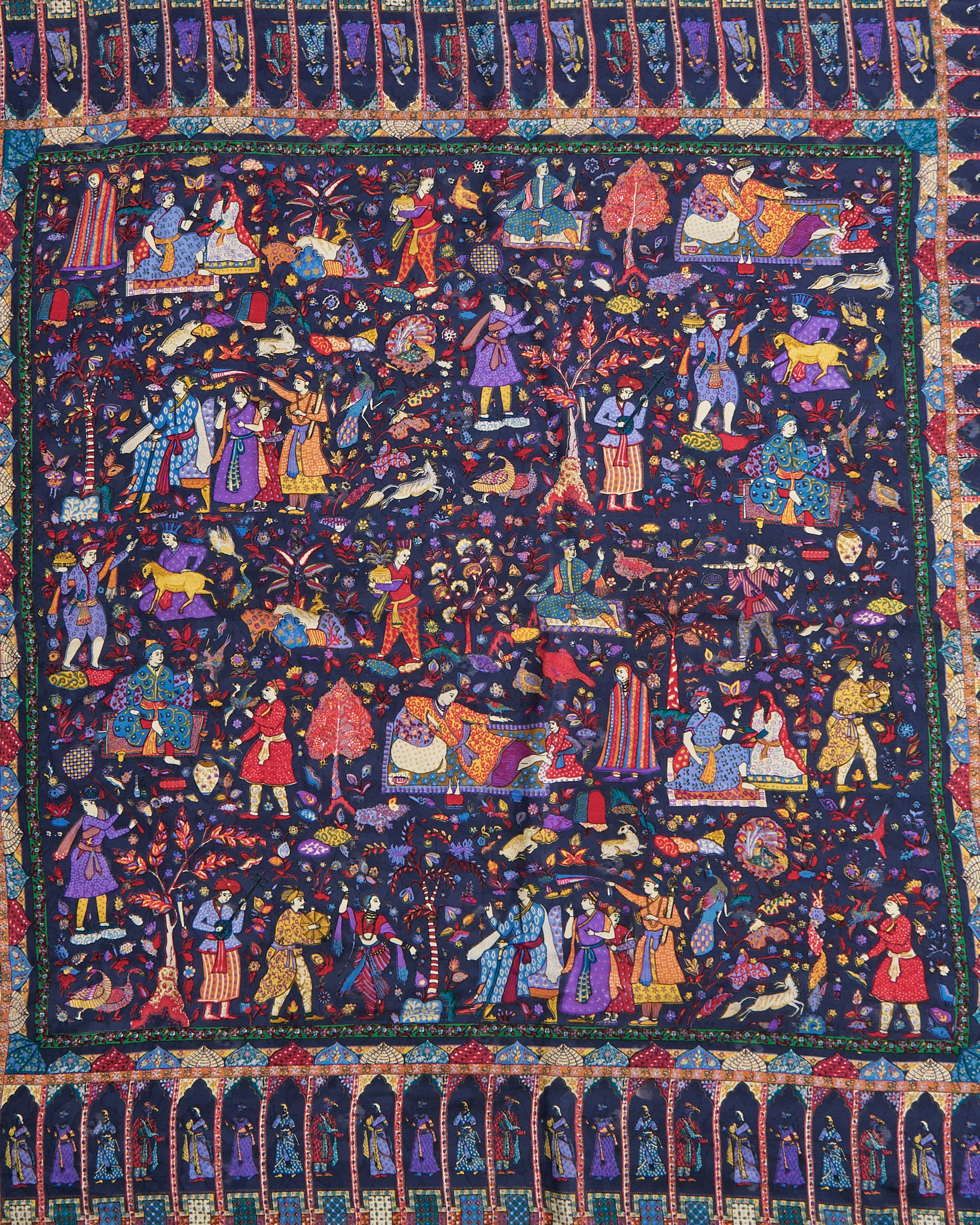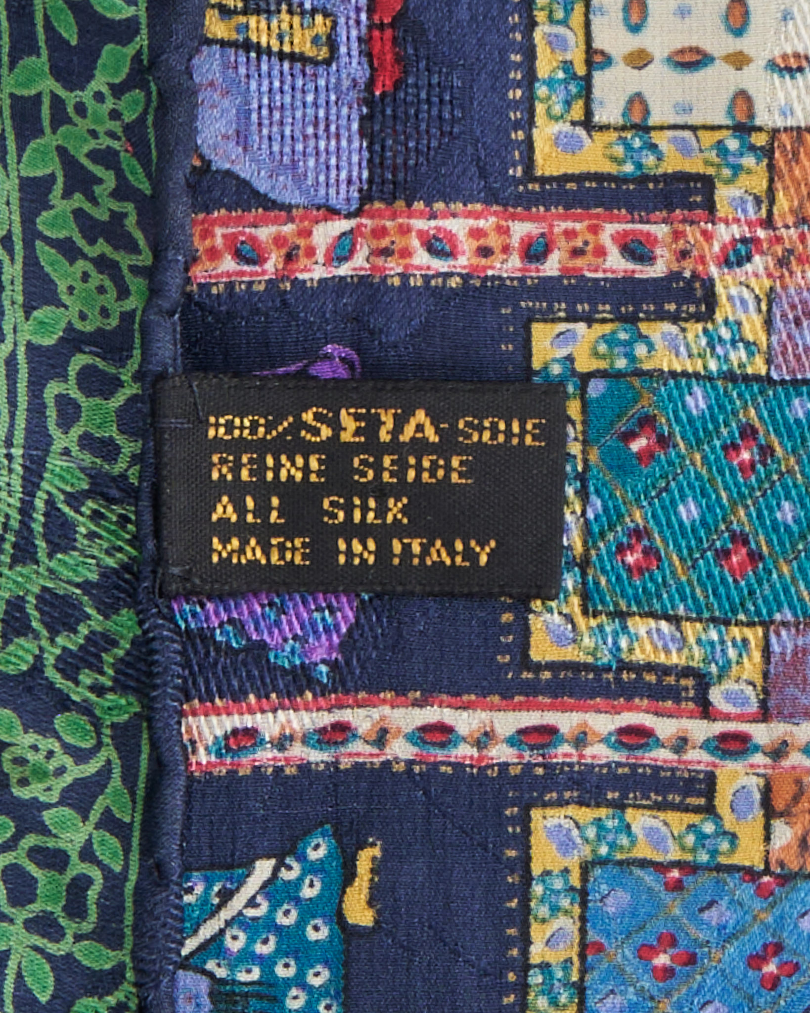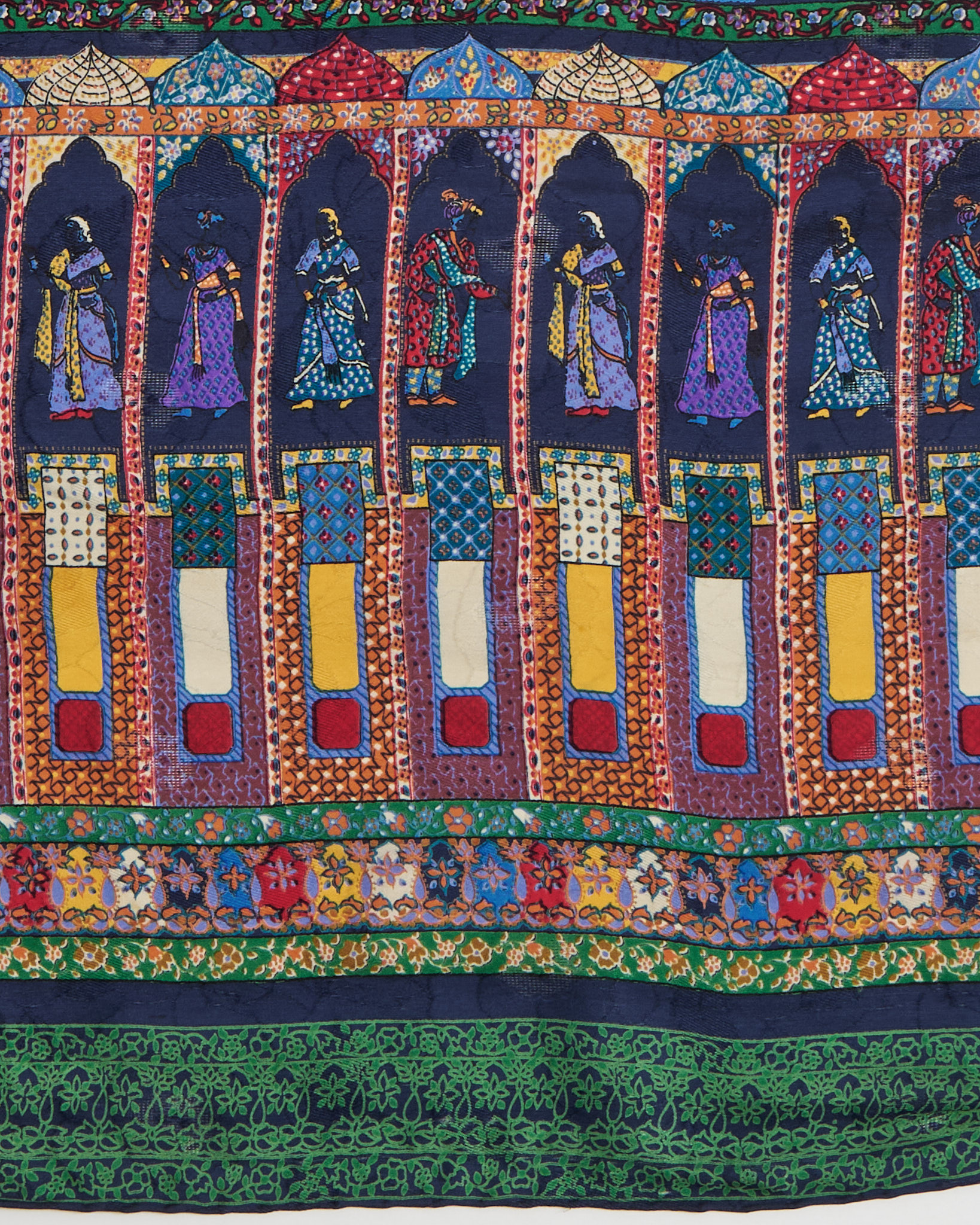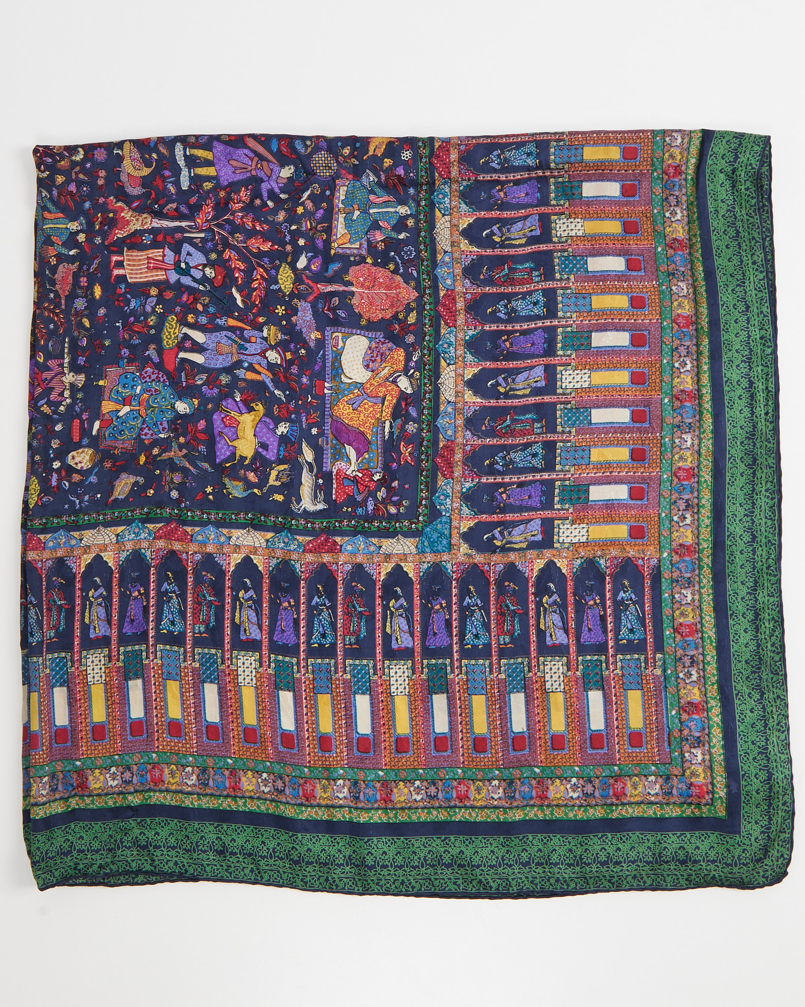 Винтажный платок из 100% шёлка. Принт в ярких оттенках в духе персидских миниатюр.