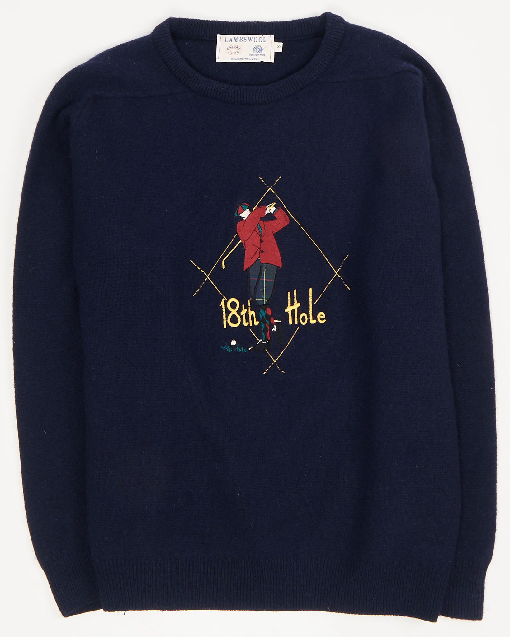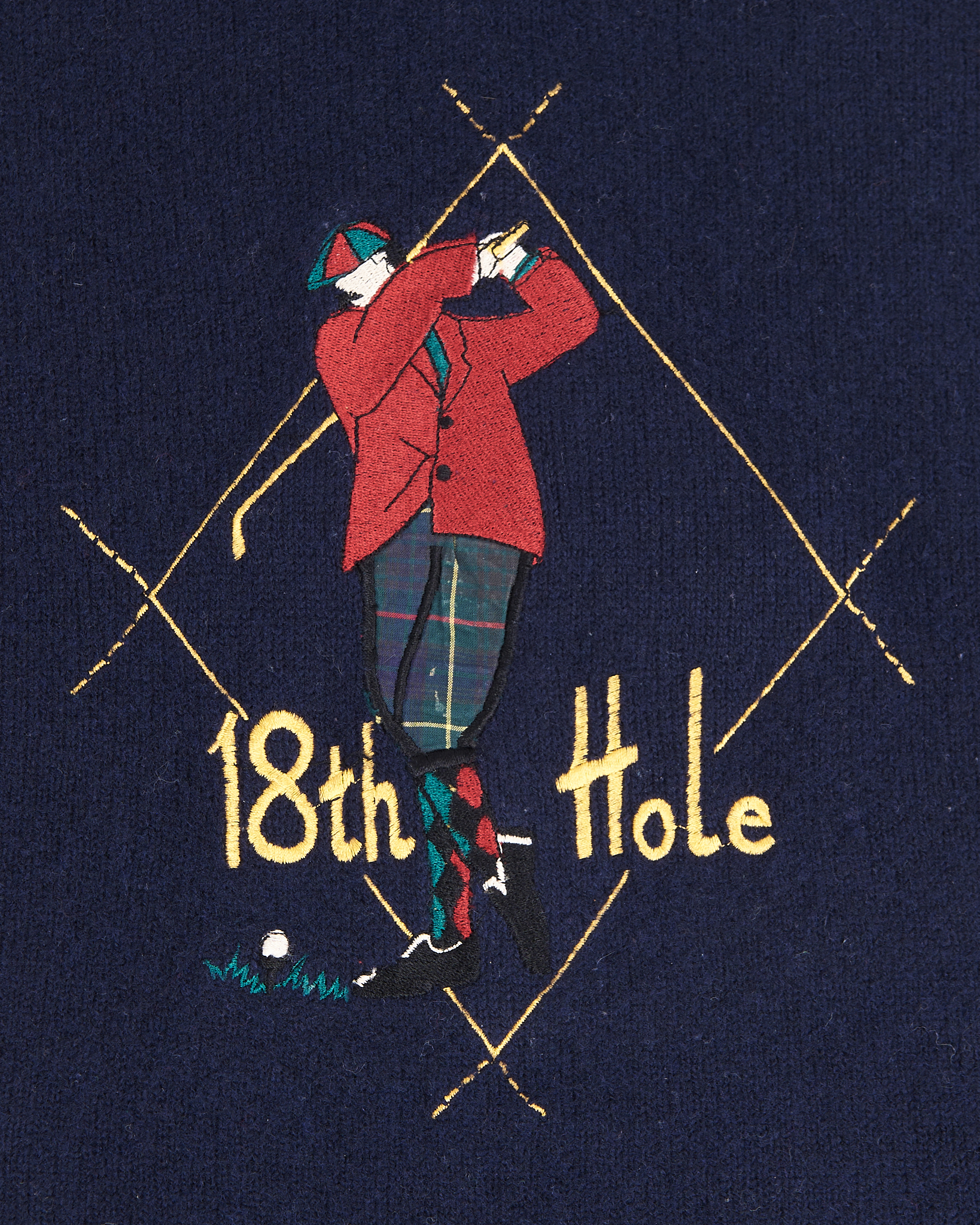 Шерстяной свитер с вышивкой “18th Hole”. Свитер из натуральной шерсти, посадка прямая. Акцентная вышивка с гольфистом, итальянское производство.
