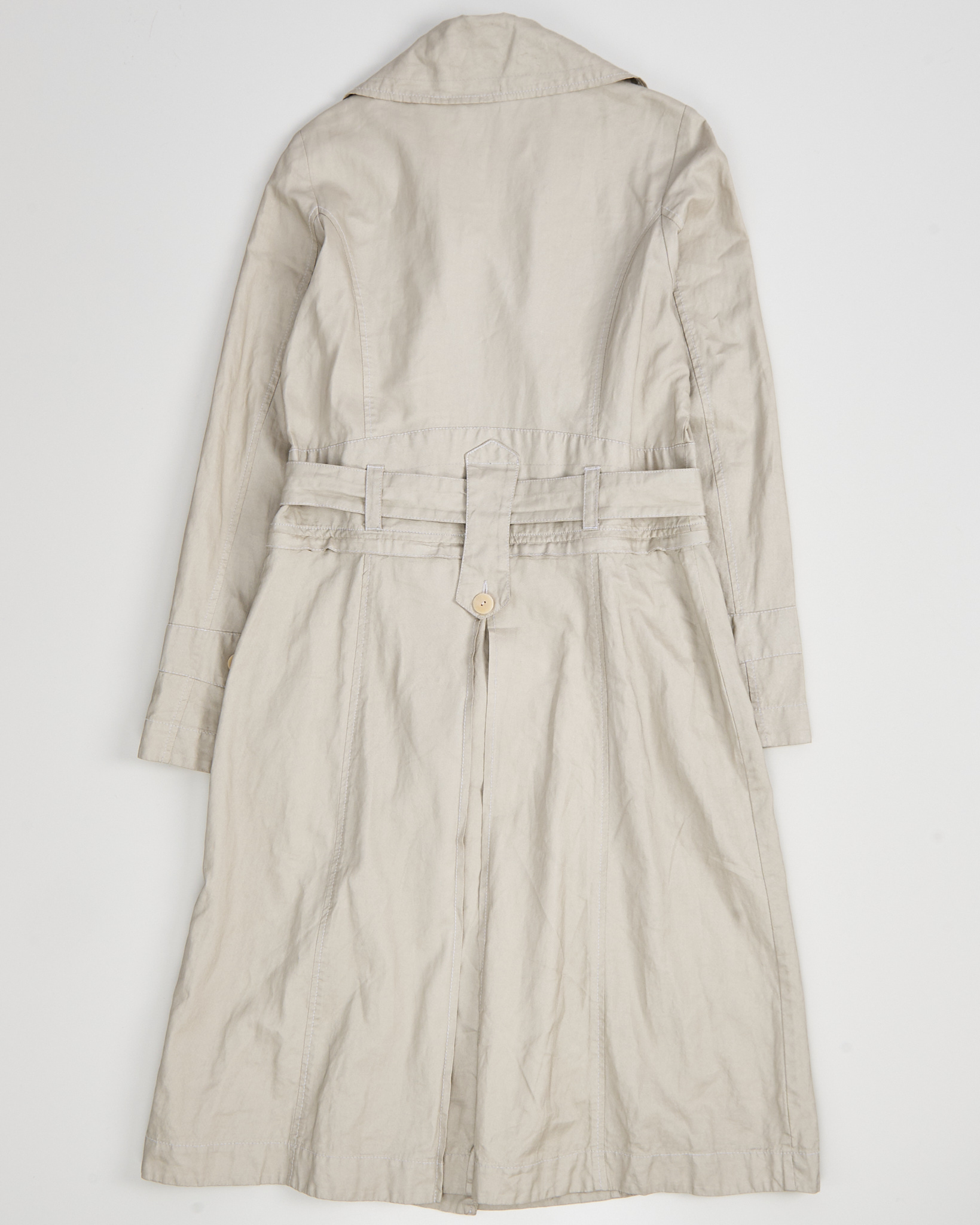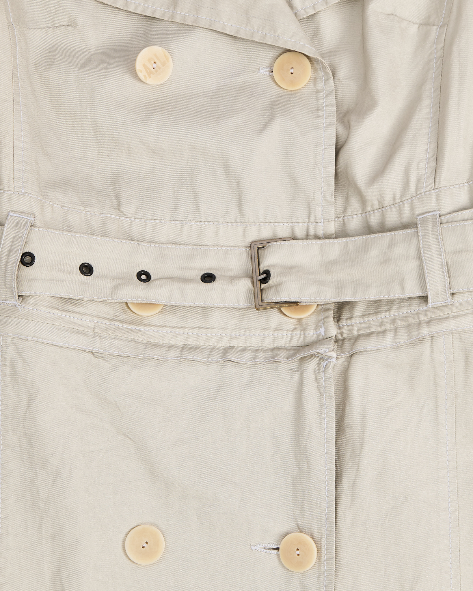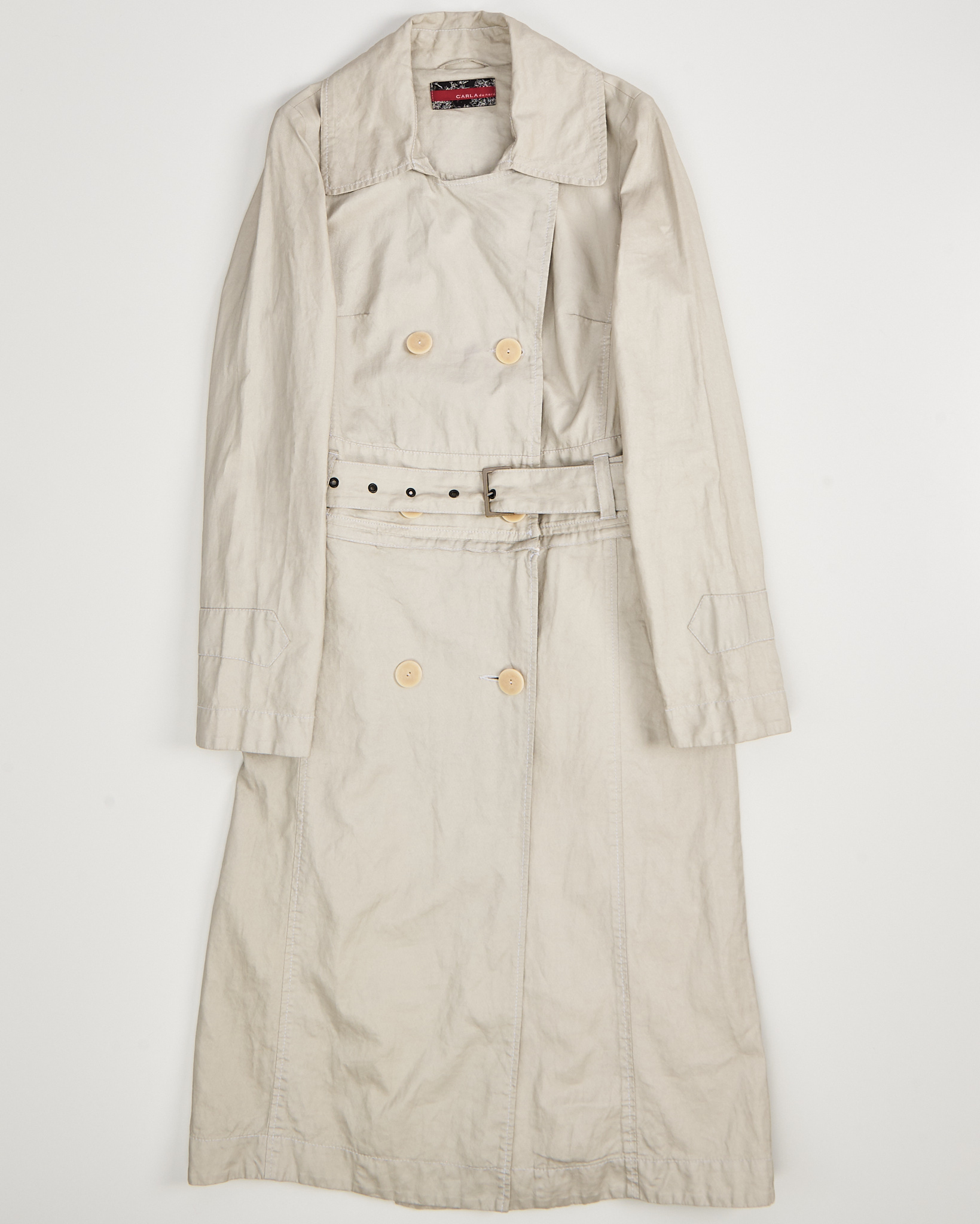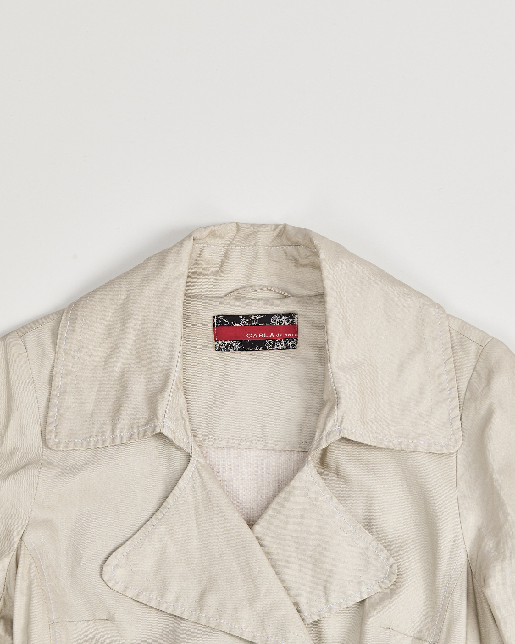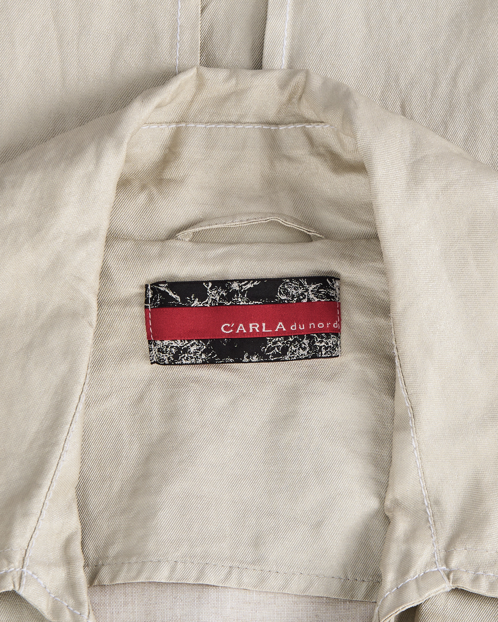 Тренч Carla du nord светло-бежевого цвета. Посадка по фигуре за счёт пояса на талии. Двубортная застёжка, широкий воротник и крупные пуговицы. Модель-трансформер можно носить в двух вариациях, нижняя часть тренча снимается с помощью скрытого замка.