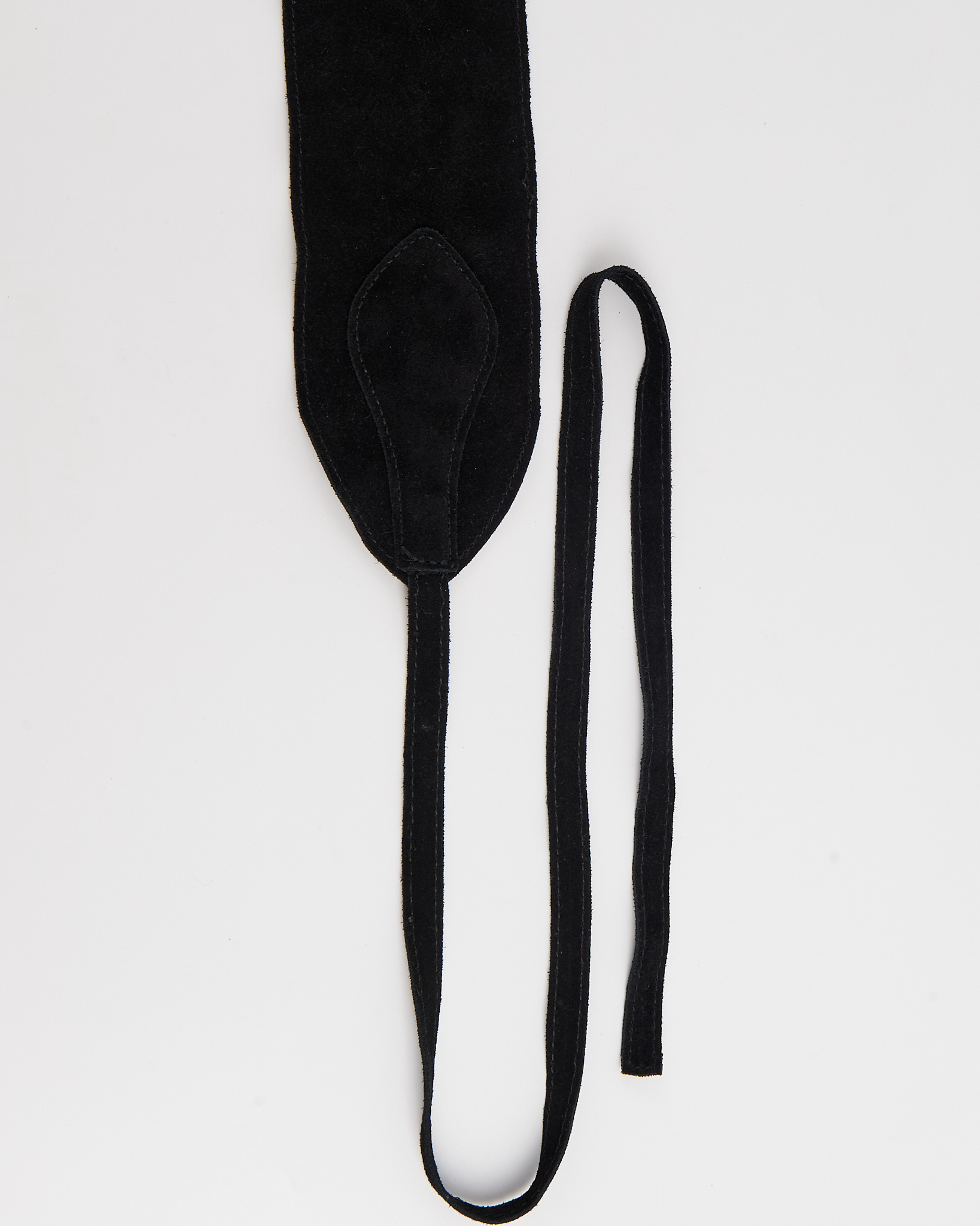 Пояс из мягкой натуральной замши глубокого чёрного оттенка. Аккуратная посадка на талии, длинные узкие завязки позволяют регулировать фиксацию и менять силуэт.