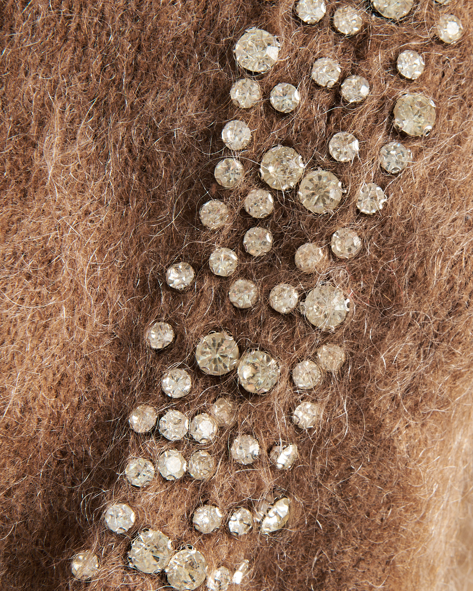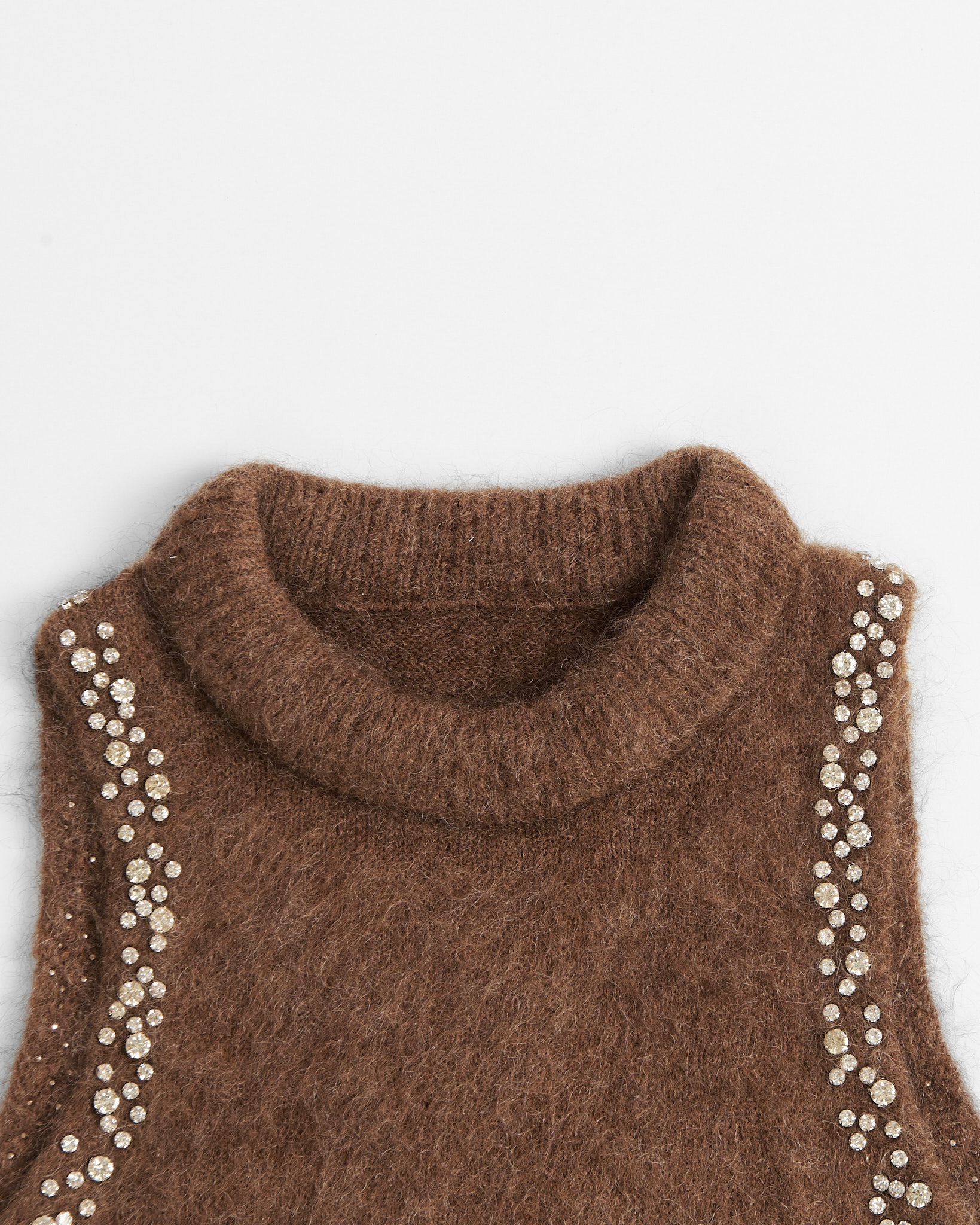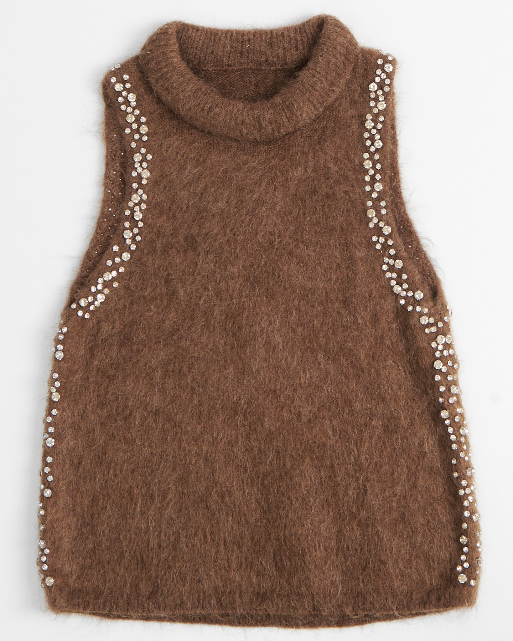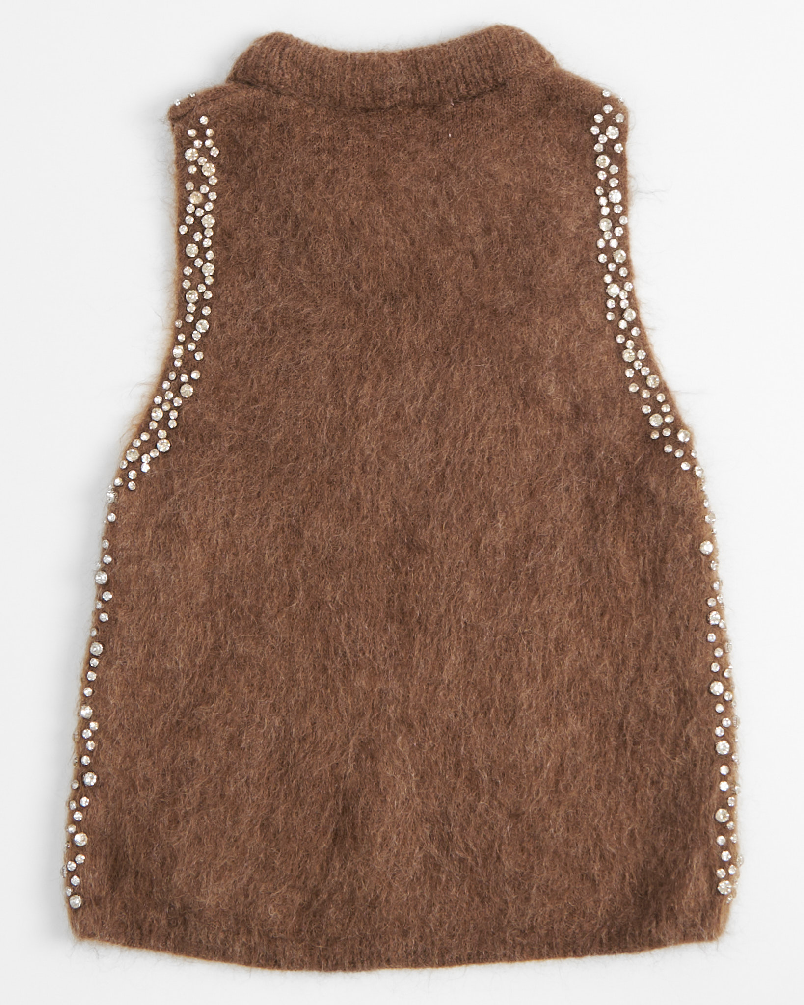 Винтажный жилет с кристаллами из мохера. Комфортная полуприлегающую посадка по фигуре. Вставка из крупных кристаллов с обеих сторон.