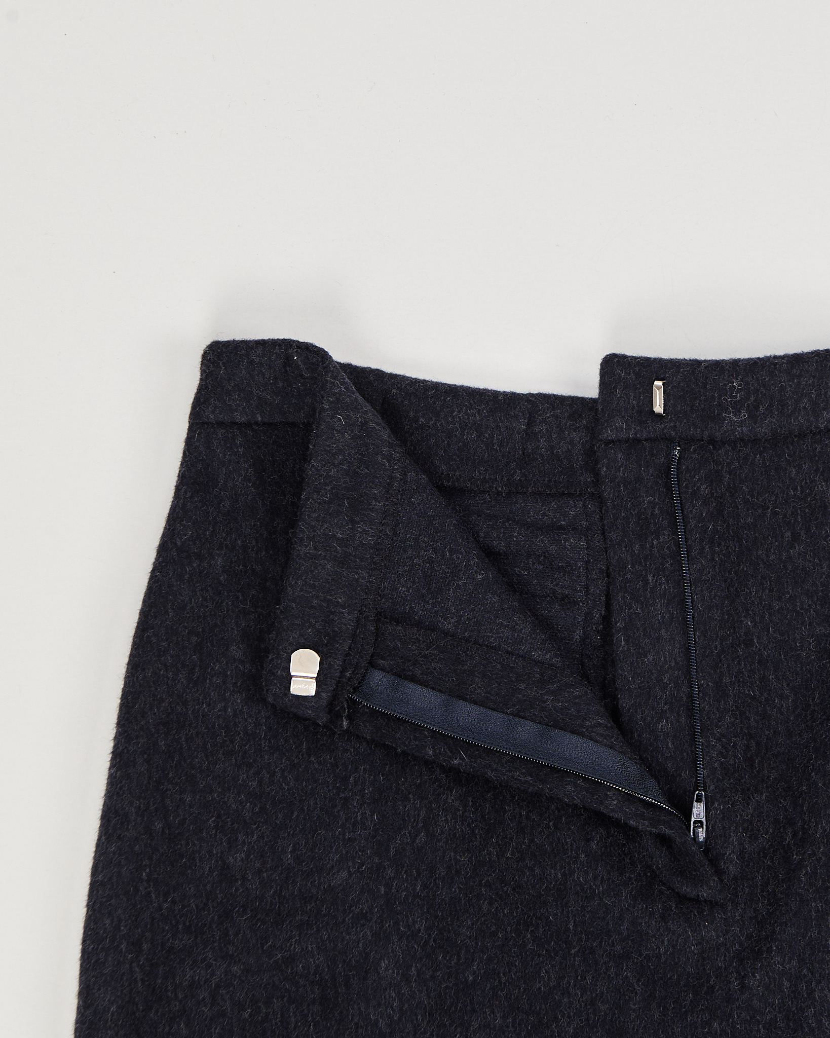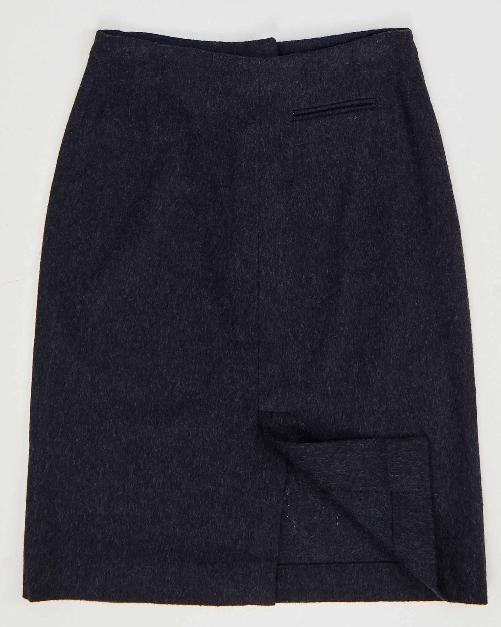 Юбка из мягкой шерсти в глубоком графитовом оттенке. Юбка прямого кроя, сзади есть небольшой разрез. Удобная потайная застёжка.