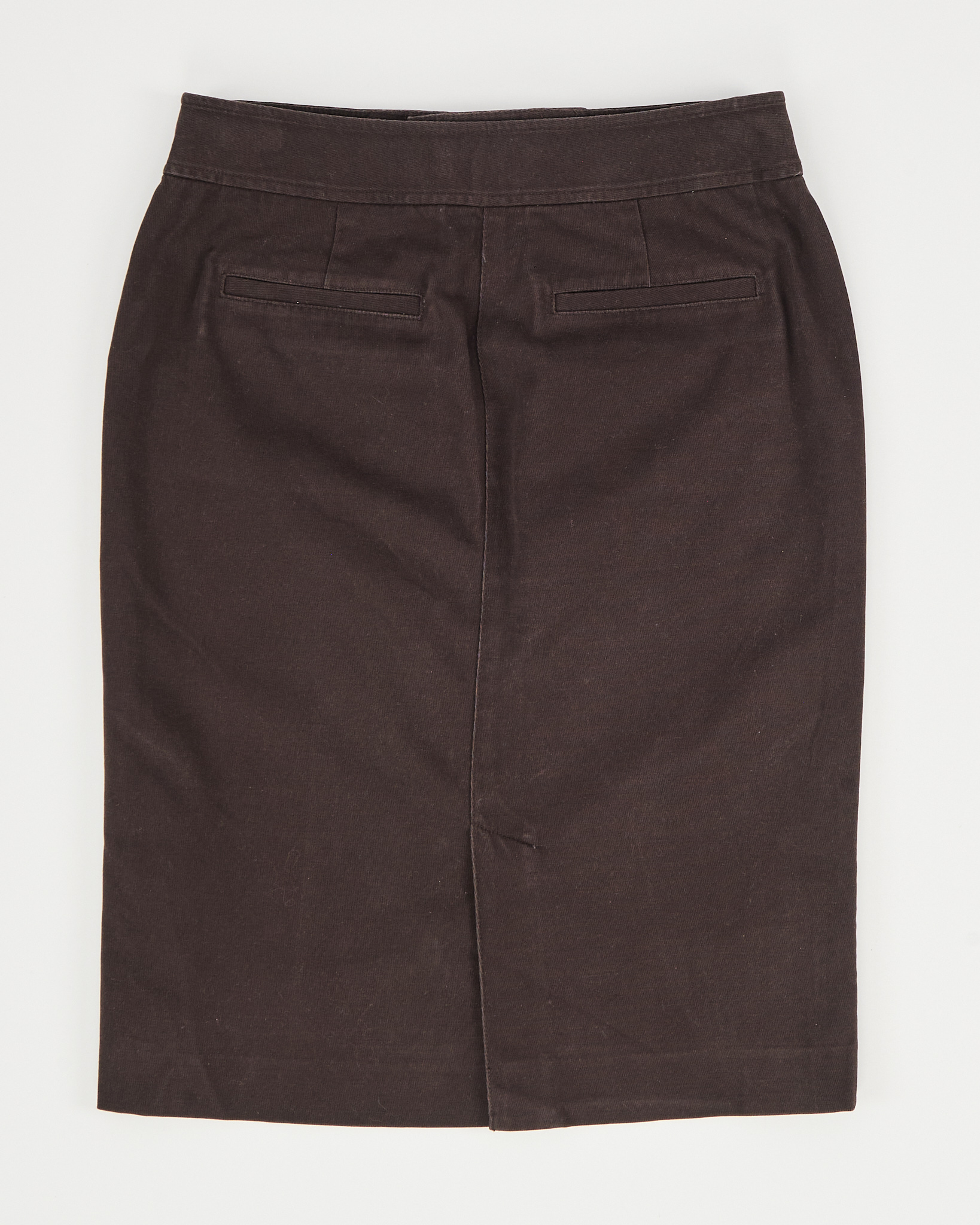 Юбка из хлопка с добавлением эластана от Ralph Lauren. Посадка высокая, чётко фиксируется по талии за счёт пояса с двойной пряжкой. Прямой силуэт, удобная застежка на молнии.