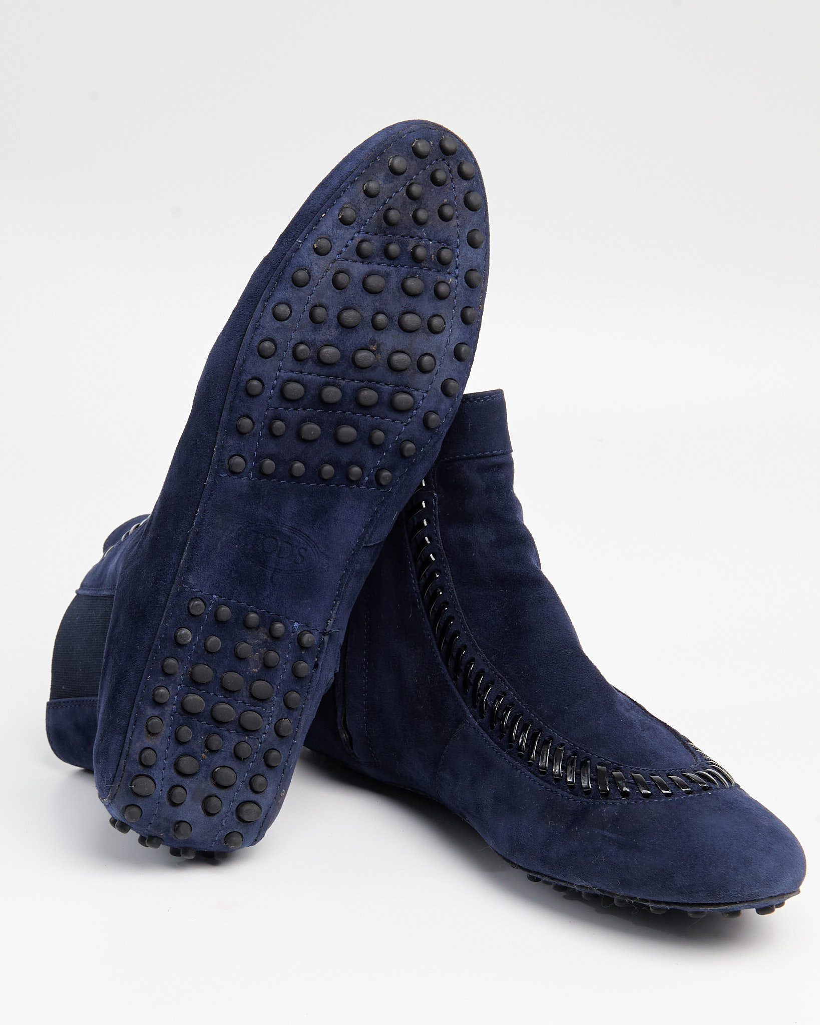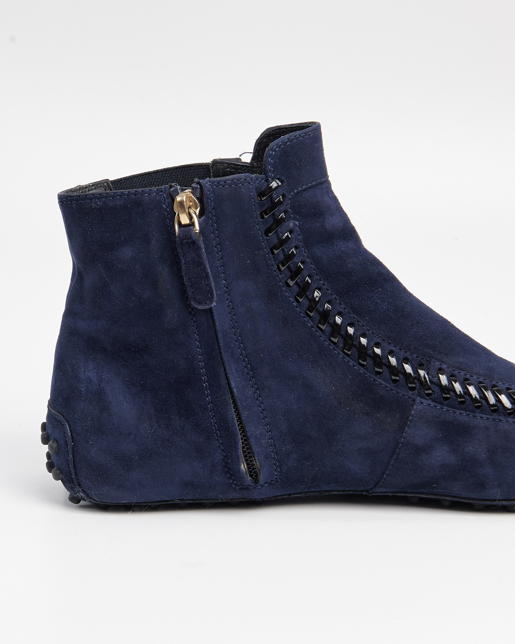 Замшевые ботинки Tod's с акцентным плетением. Эластичные вставки по бокам, подошва с резиновыми шипами.