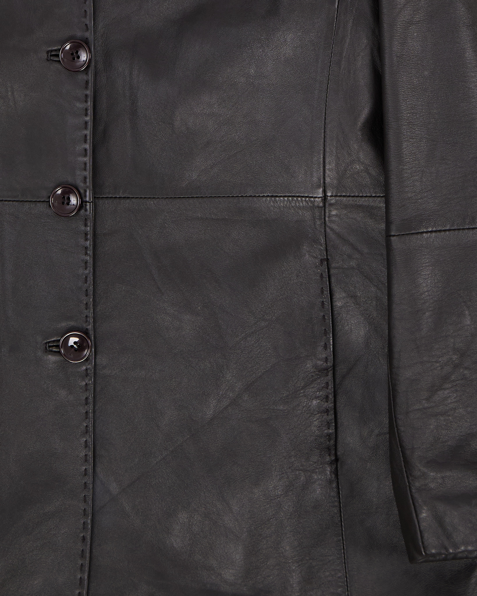 Жакет из натуральной кожи Hi-Buxter. Прямой крой, свободная посадка, двубортный воротник. Акцентные швы, качественная фурнитура.
