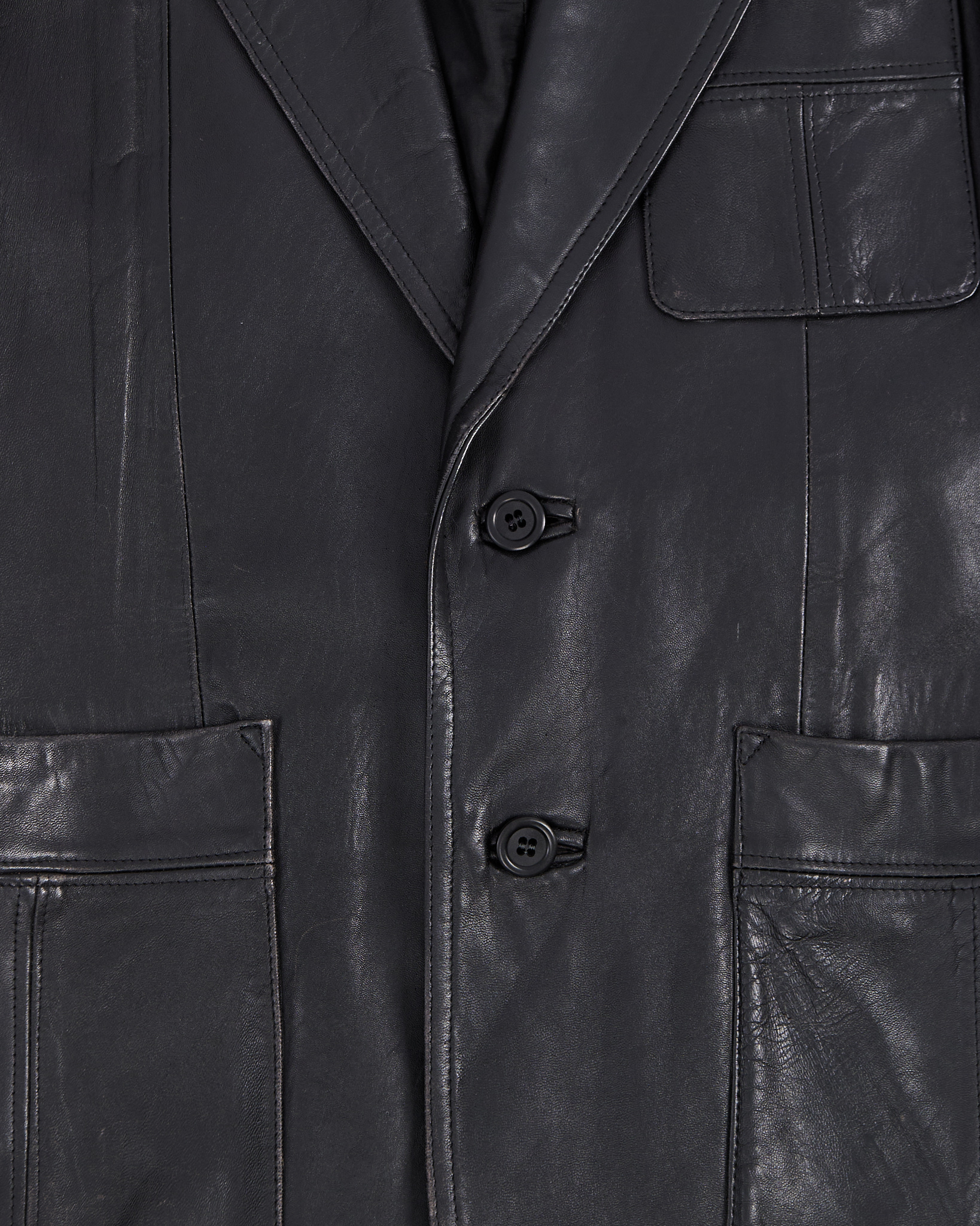 Жакет из 100% натуральной кожи. Прямой крой, свободная посадка, двубортный воротник. Функциональные карманы по бокам.