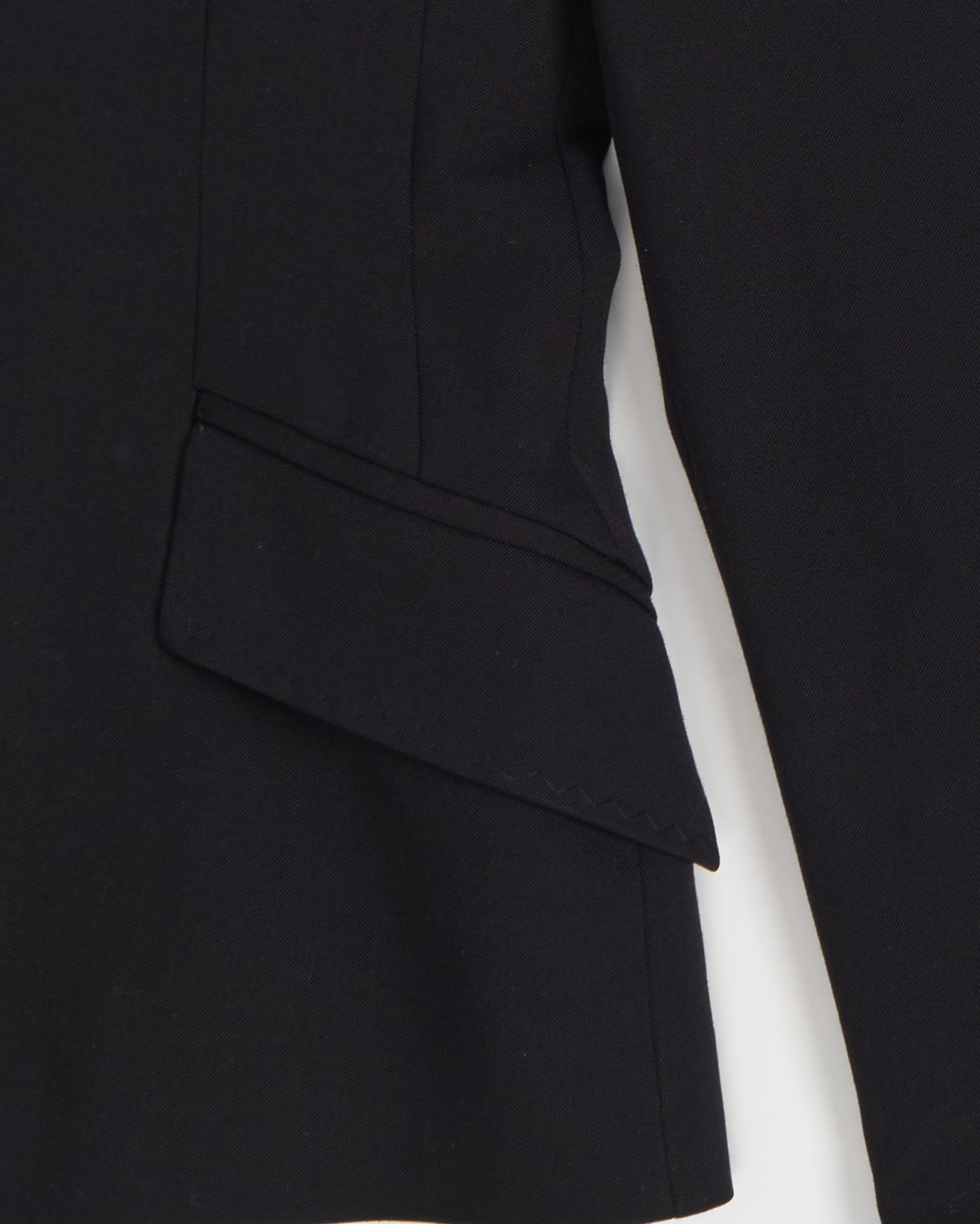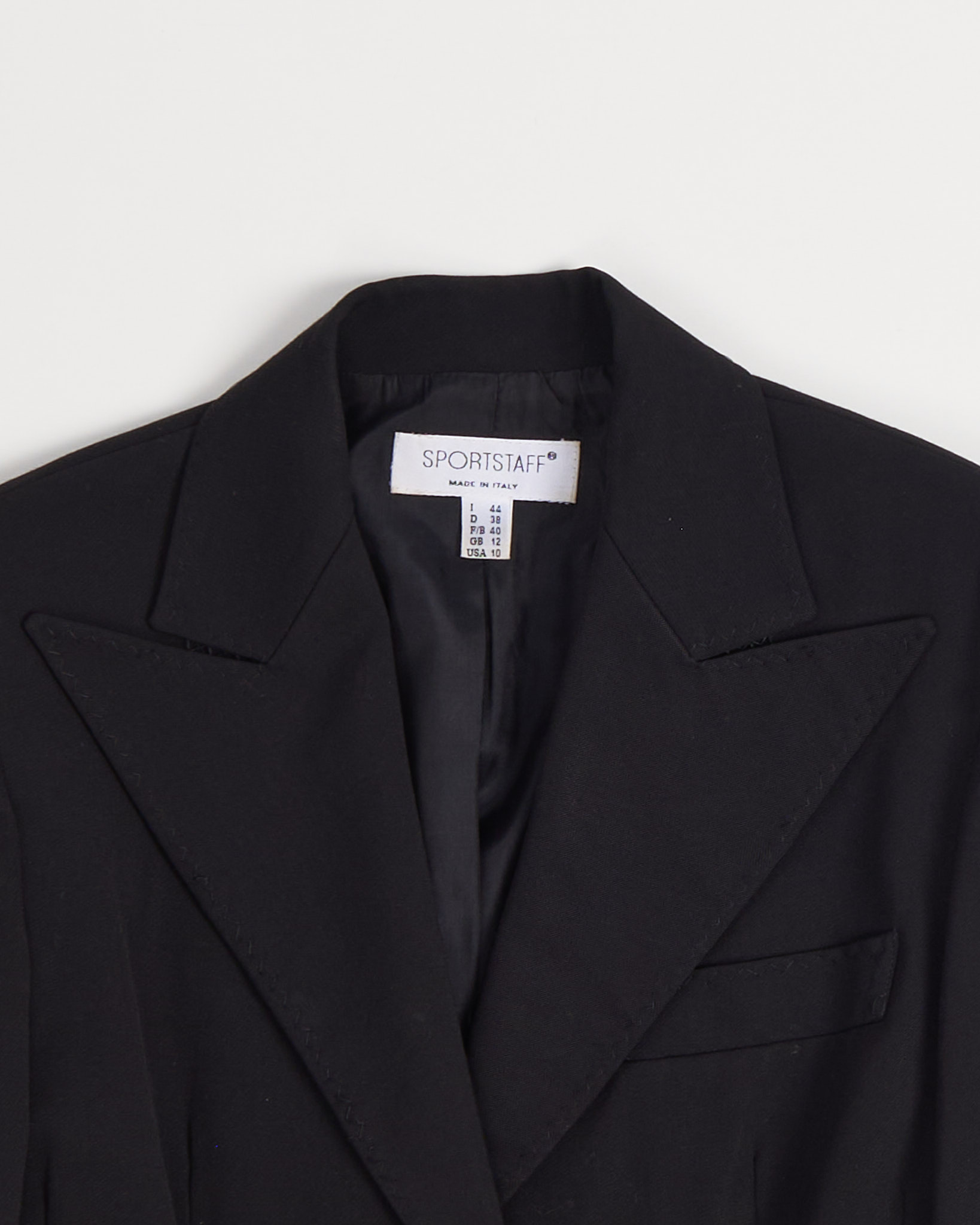 Пиджак от итальянского бренда Sportstaff. Выполнен в глубоком черном оттенке с четкой линией плеч и выразительными лацканами. Посадка с акцентом на талию, детали в виде аккуратных клапанов и пуговиц на манжетах.