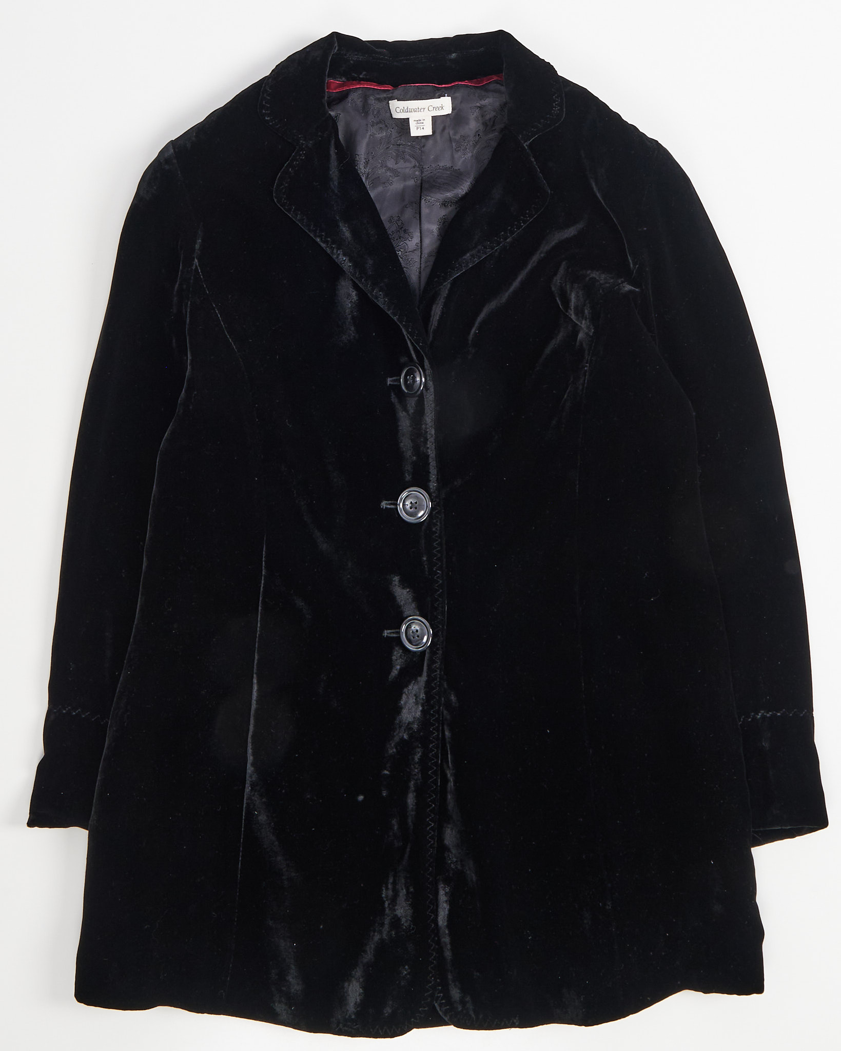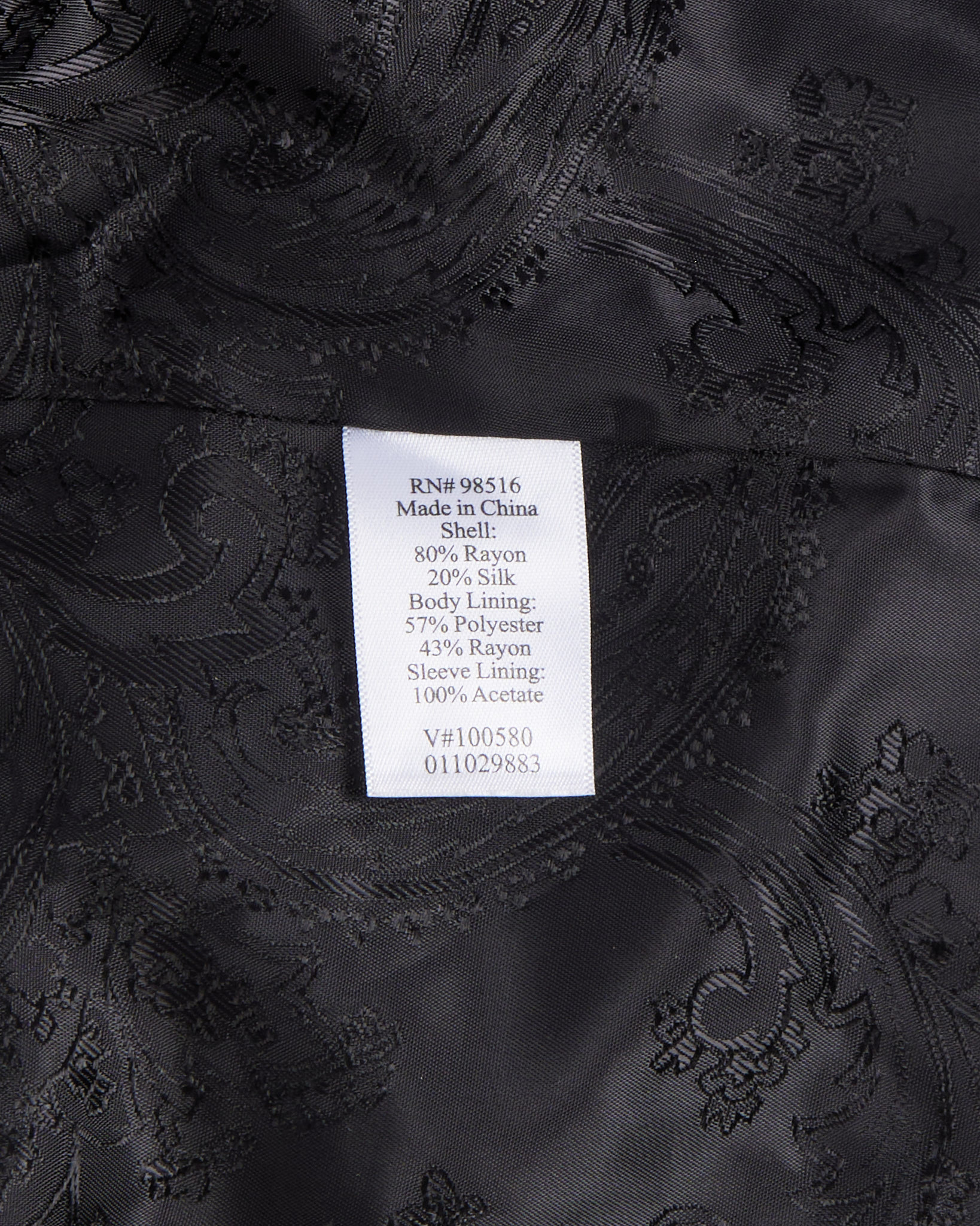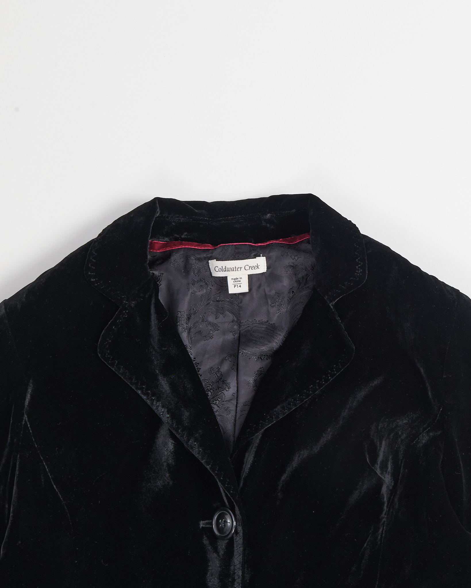 Жакет выполнен из мягкого и благородного бархата с легким блеском. Подкладка украшена жаккардовым узором